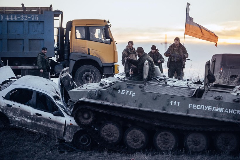 Xe tăng T-64 của dân quân Donesk trong công sự