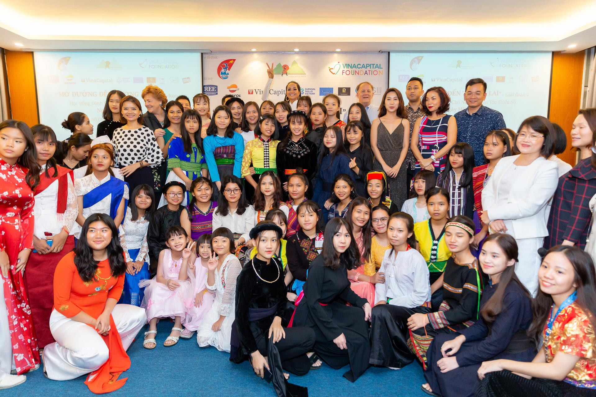 Trong chương trình, thay mặt quỹ Vừ A Dính, hoa hậu H’Hen Niê trao quà tặng cho 50 em nữ sinh có thành tích học tập xuất sắc trong năm học vừa qua.