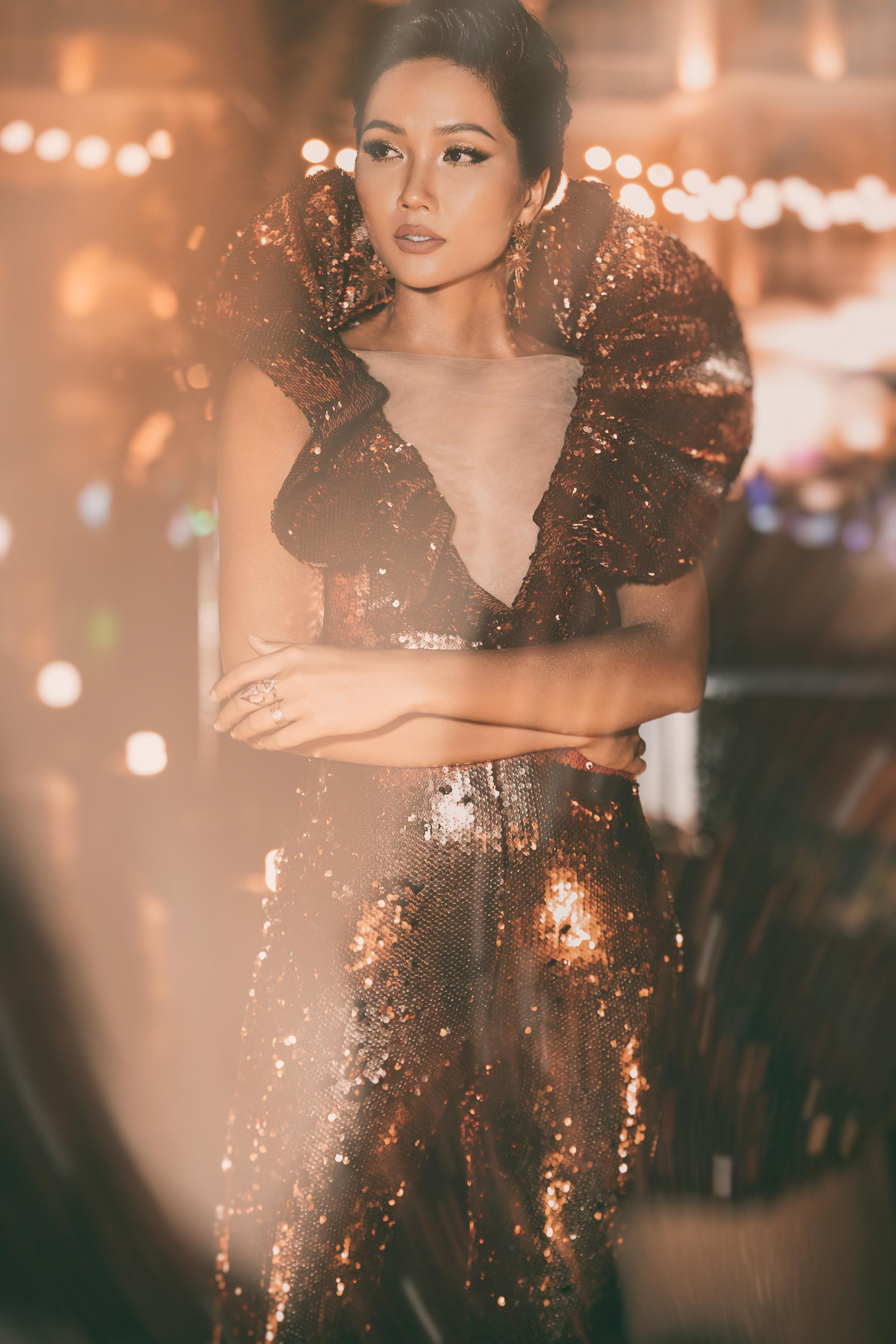 Còn nhớ trong chương trình tiệc tối của Miss Universe, H'Hen Niê diện chiếc váy ngắn bó sát phá cách với các chi tiết ở phần cổ được thiết kế cách điệu vô cùng lạ mắt, giúp H'Hen Niê tạo được ấn tượng mạnh và thu hút sự chú ý của truyền thông cũng như nhận được vô số lời khen của BTC lẫn các thí sinh tham dự chương trình.