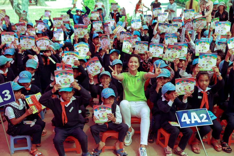 Hoa hậu H'Hen Niê ở thư viện Room to Read Lâm Đồng