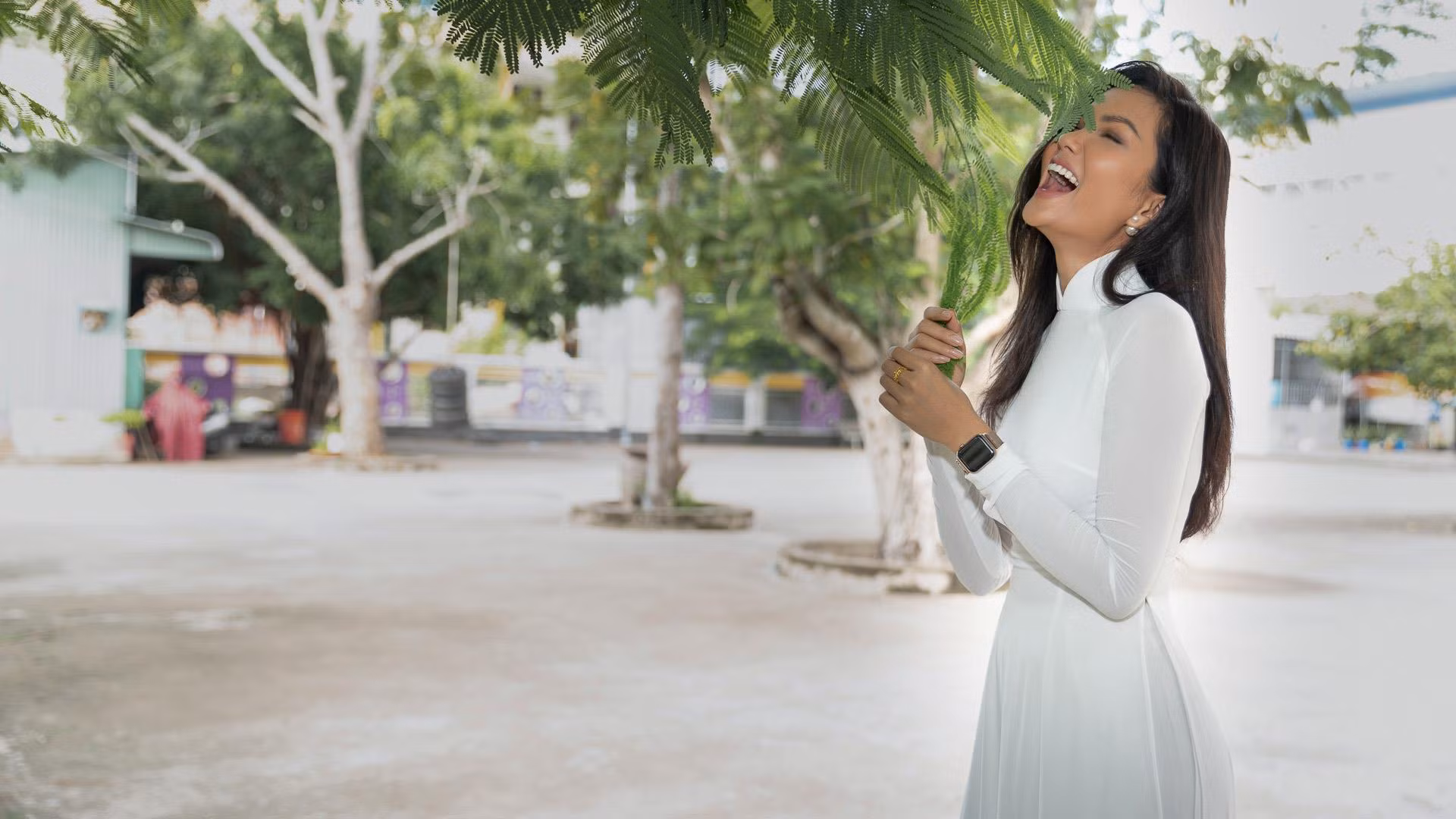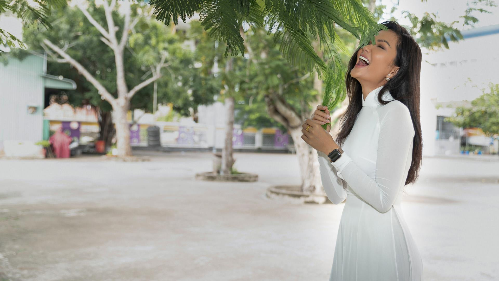 | Á hậu Hoàng Thùy với nét đẹp dịu dàng trong trẻo trong tà áo giản dị |