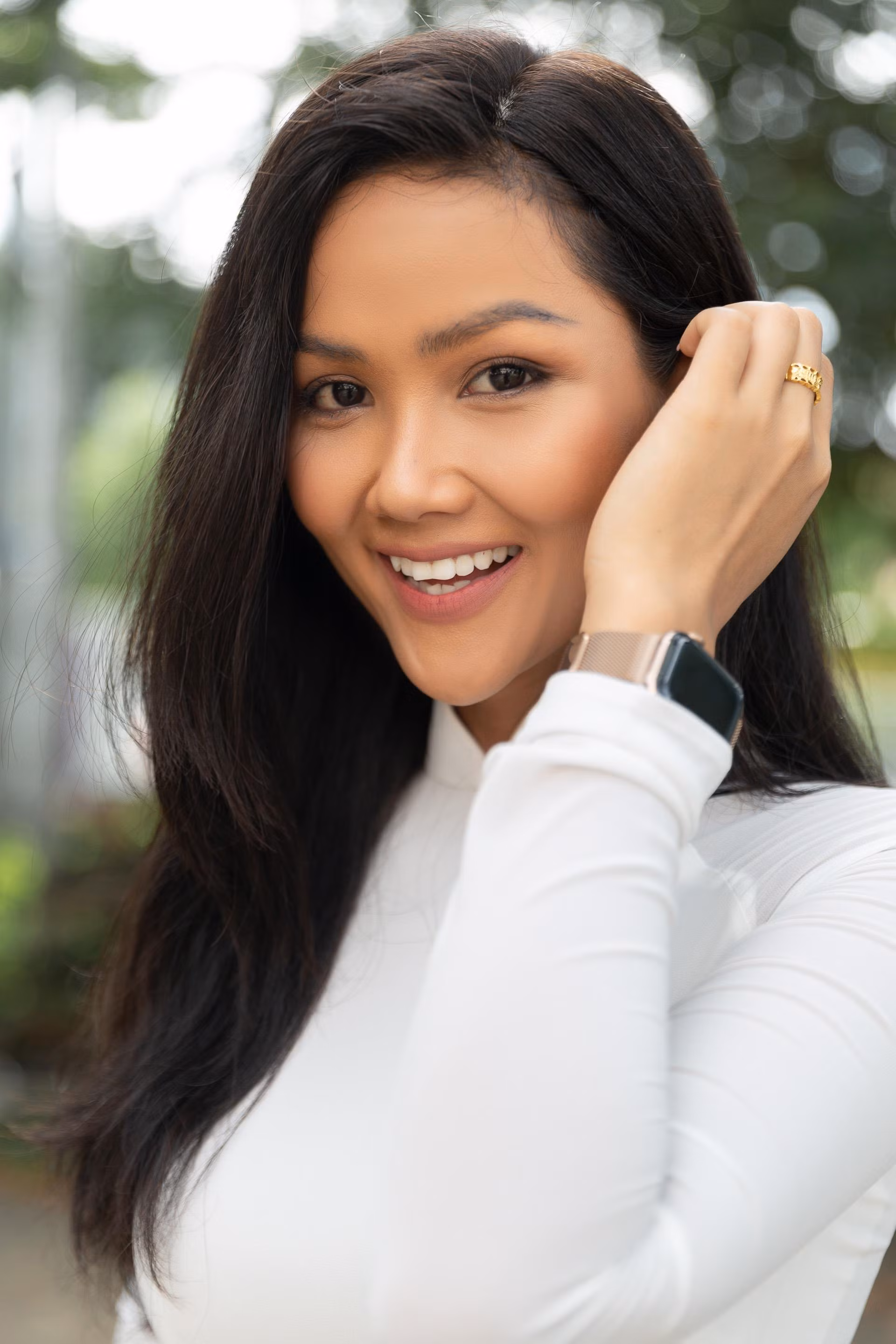 | Hoa hậu H'Hen Niê dịu dàng với áo trắng và tóc dài |