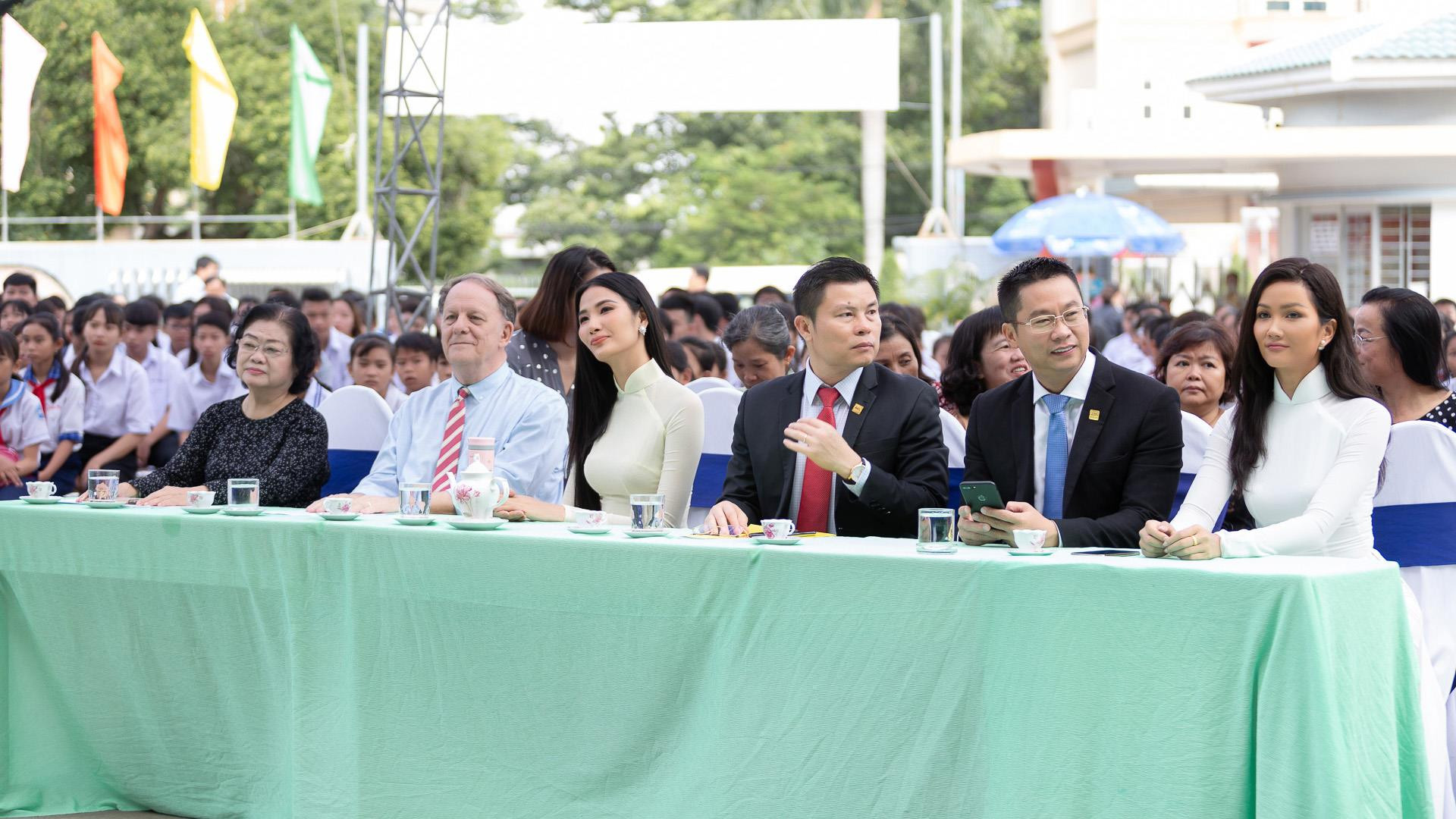 | Á hậu Hoàng Thùy trao học bổng tới các em học sinh |