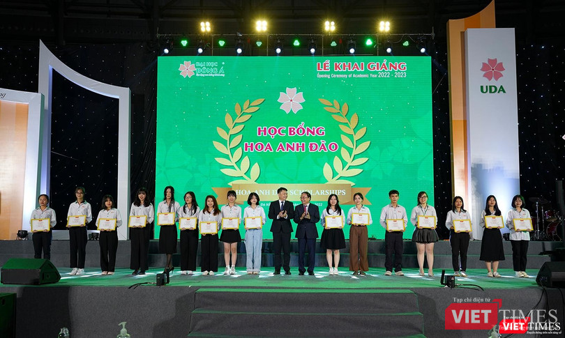 Cũng tại lễ khai giảng, Quỹ học bổng Hoa Anh Đào ĐH Đông Á cũng đã dành 2 suất học bổng toàn phần toàn khóa học để trao đến 2 sinh viên có hoàn cảnh đặc biệt. Trong đó, học bổng toàn phần đầu tiên được trao cho tân sinh viên Nguyễn Minh Châu-ngành Công nghệ thông tin. Minh Châu được mệnh danh là “chú lính chì” dũng cảm trên chiếc xe lăn với 12 năm liên tục đạt học lực khá giỏi và vừa xuất sắc giành được điểm tiếng Anh 5.5 IELTS ngay trước khi trở thành sinh viên.