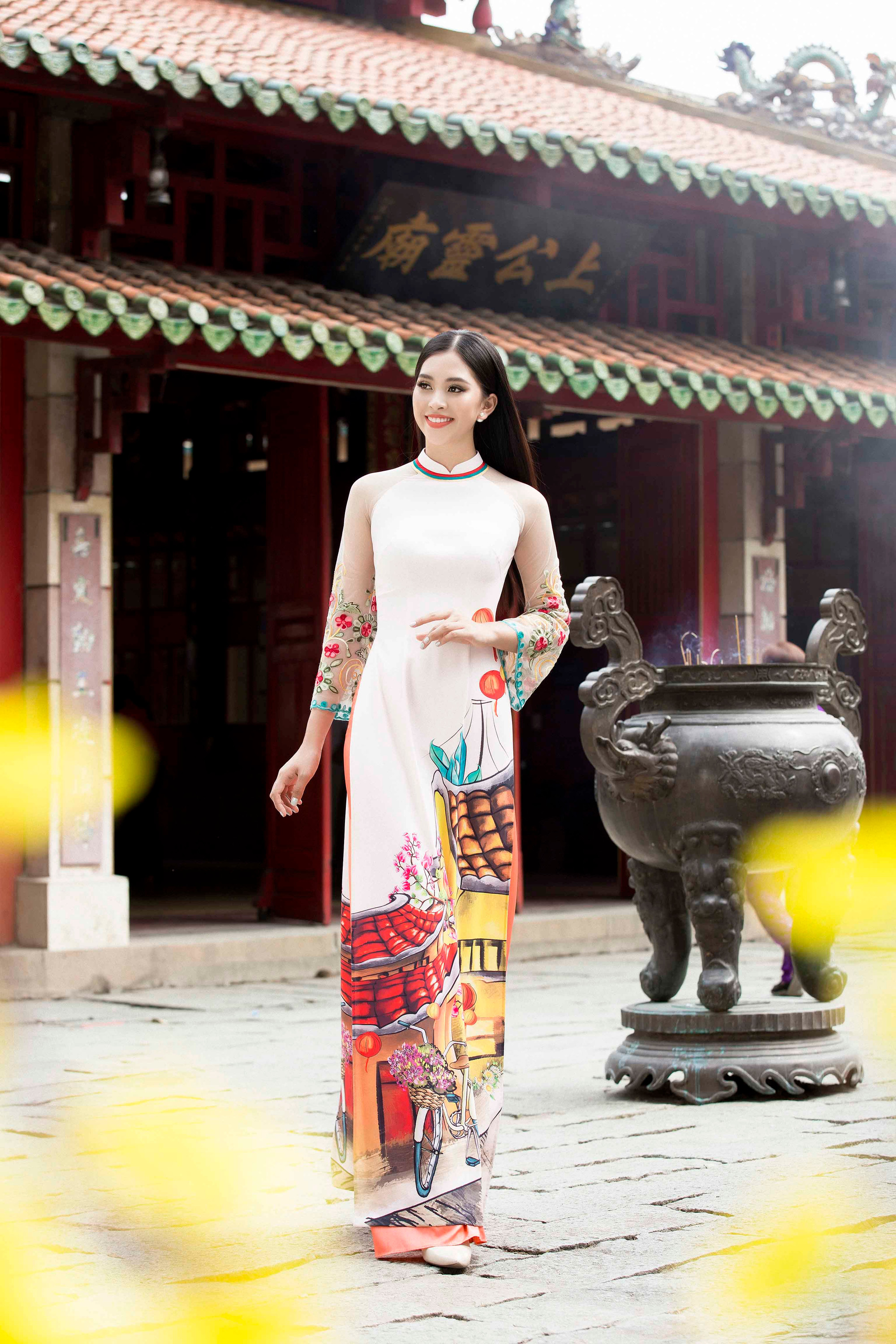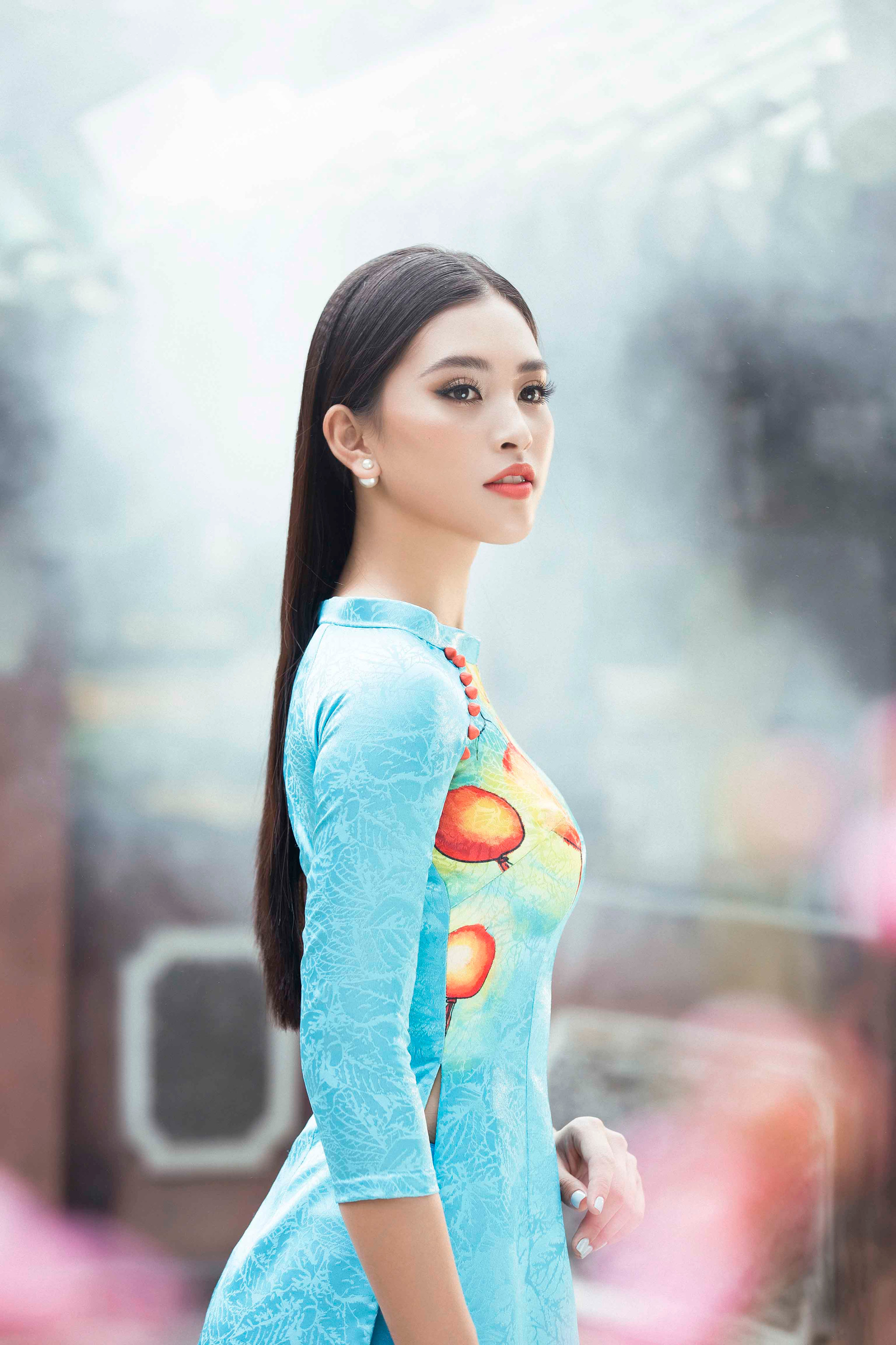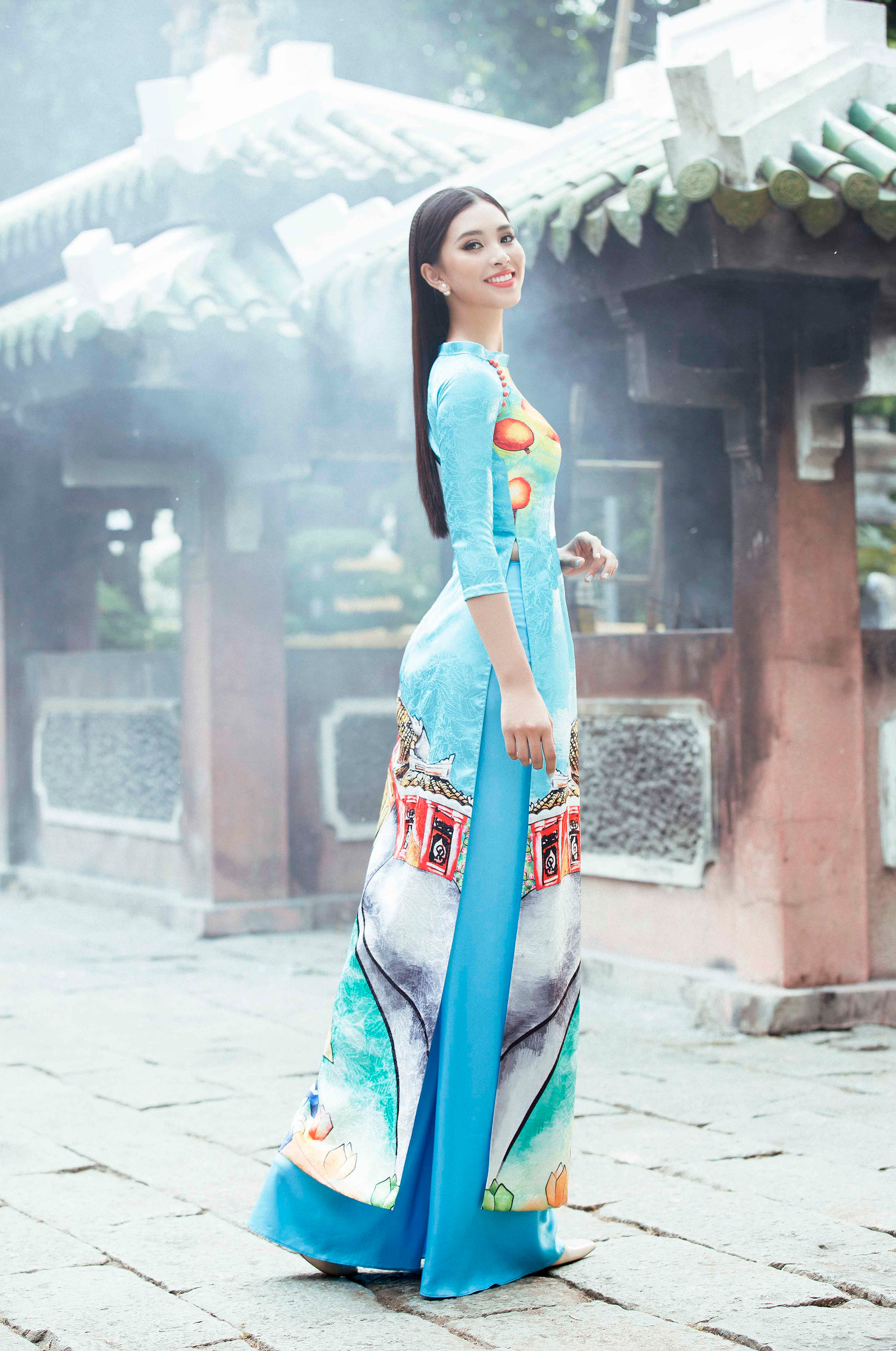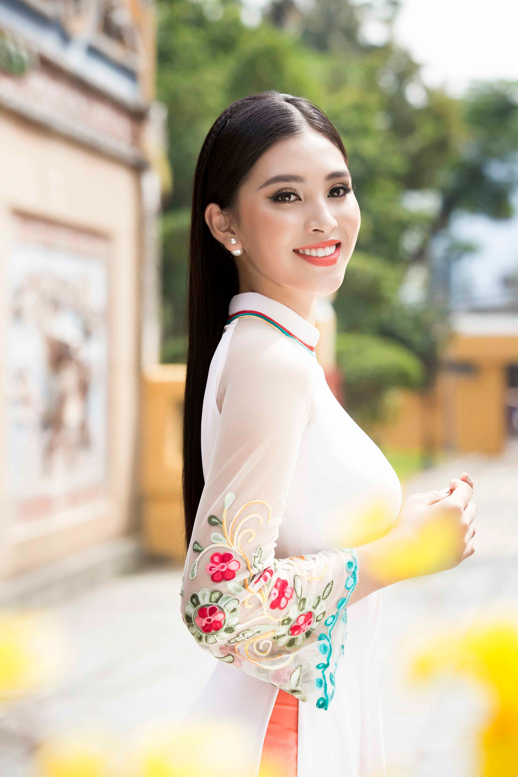 Nhan sắc quyến rũ, ngọt ngào tuổi 18 của Hoa hậu Việt Nam 2018 Tiểu Vy tỏa sáng rạng rỡ trong trang phục áo dài truyền thống của nhà thiết kế Ngô Nhật Huy.