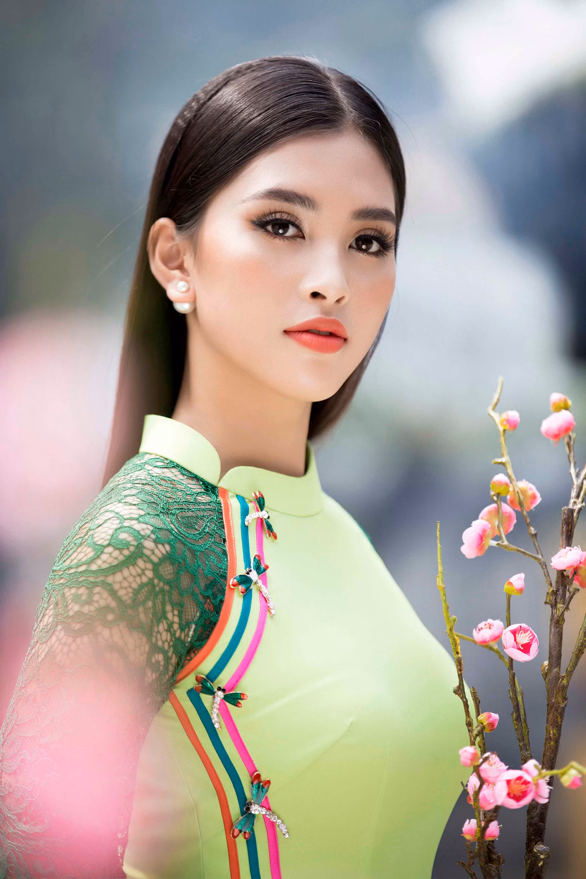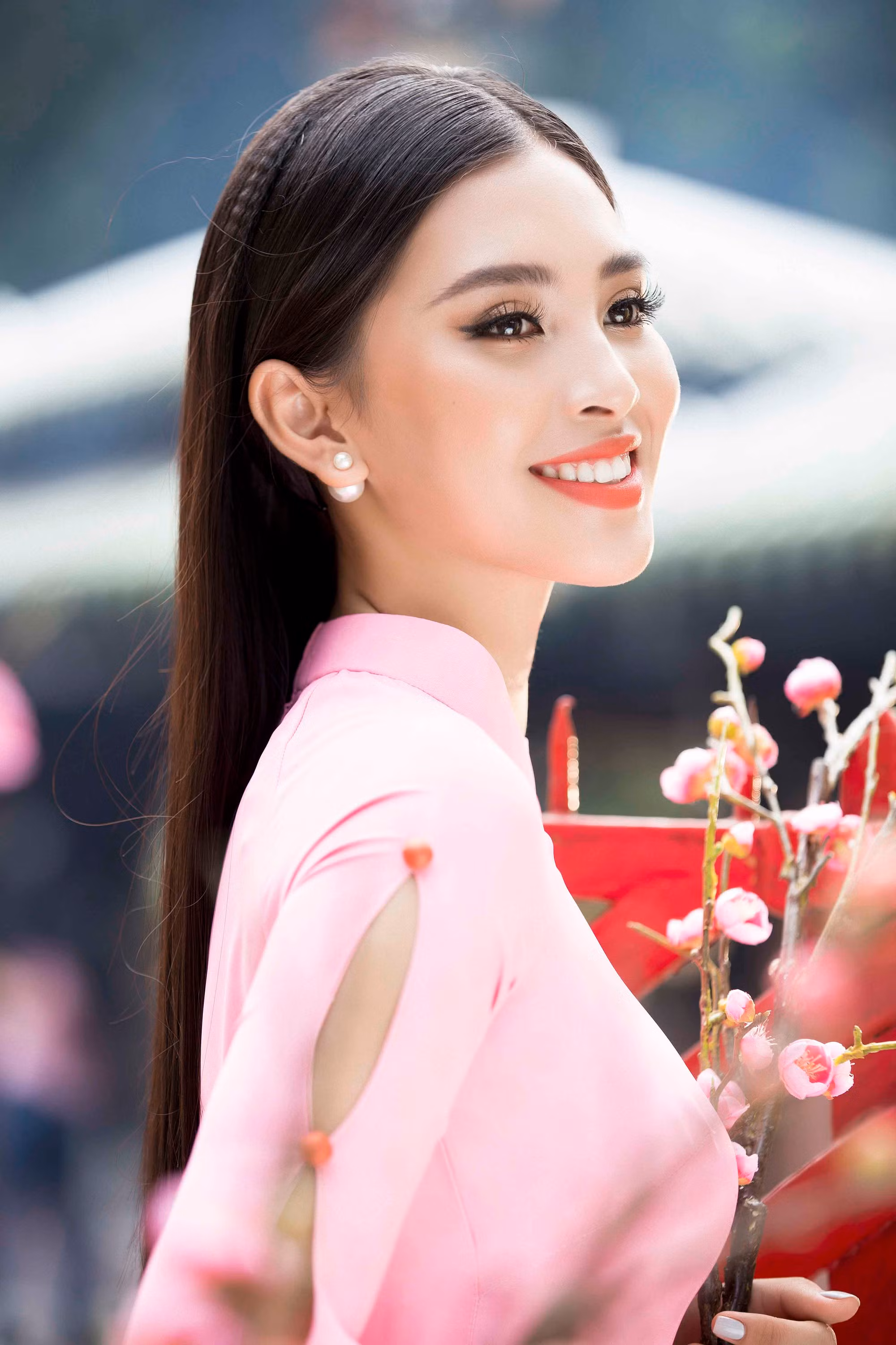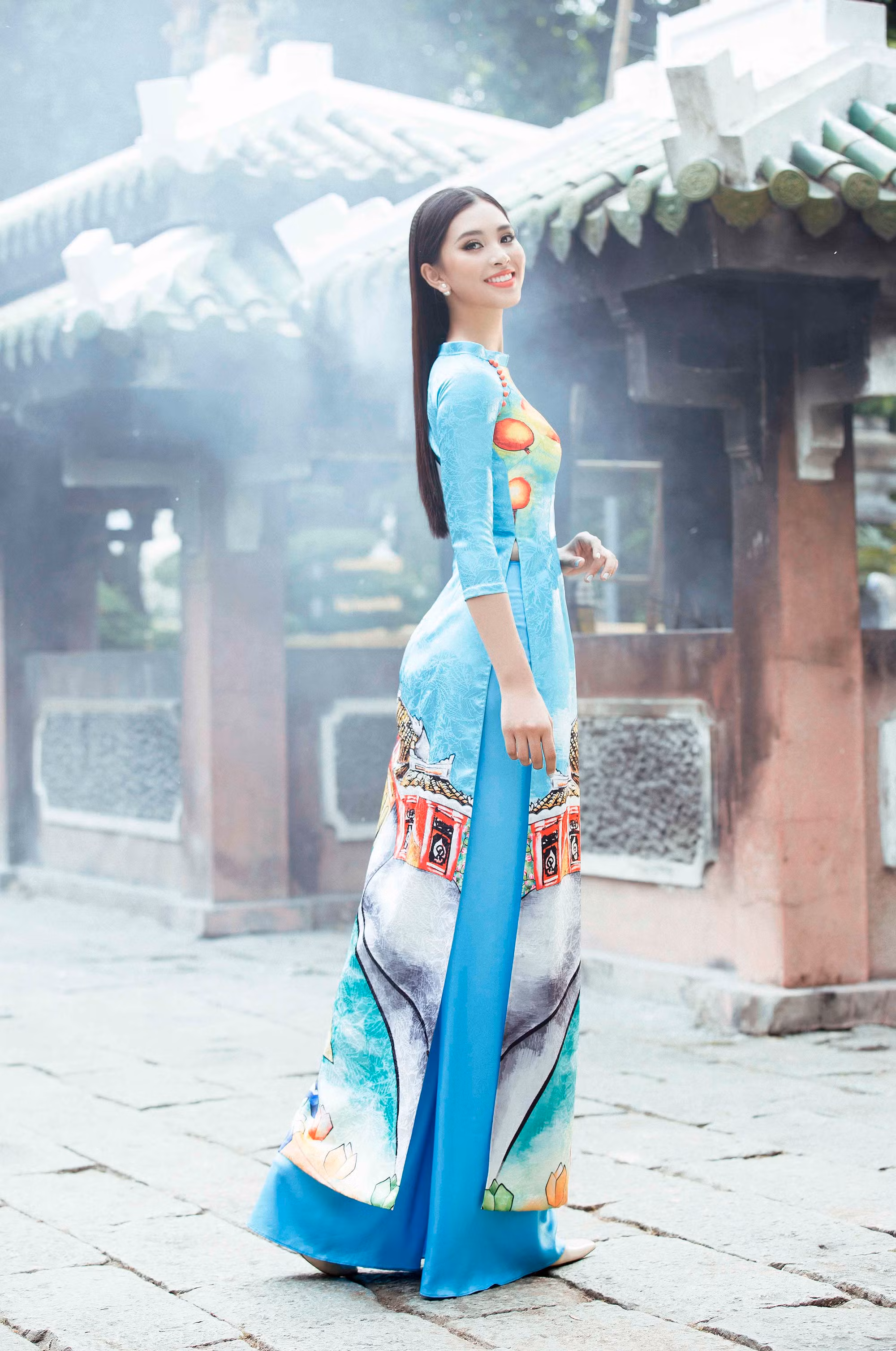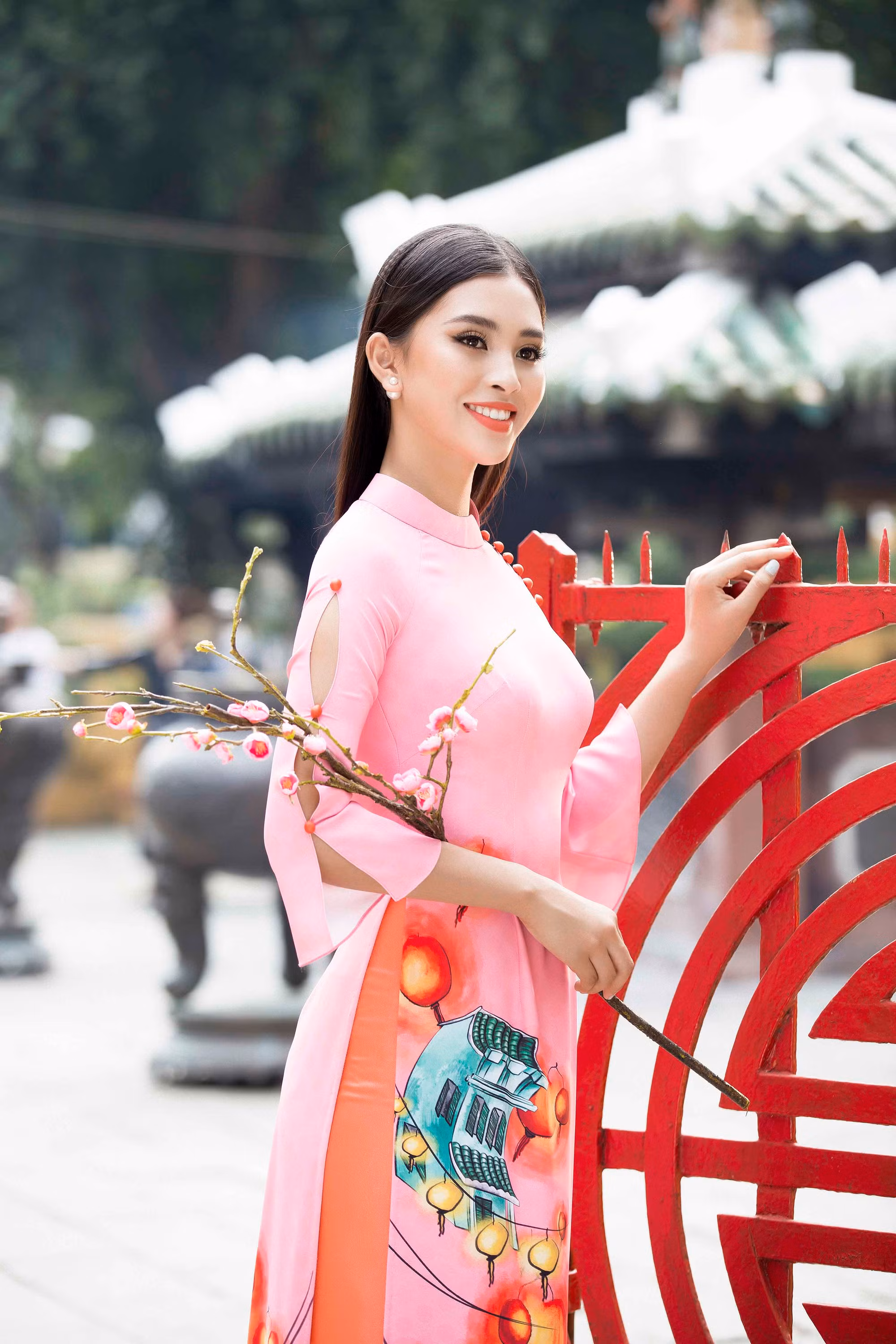 Nhan sắc quyến rũ, ngọt ngào tuổi 18 của Hoa hậu Việt Nam 2018 Tiểu Vy tỏa sáng rạng rỡ trong trang phục áo dài truyền thống của nhà thiết kế Ngô Nhật Huy.