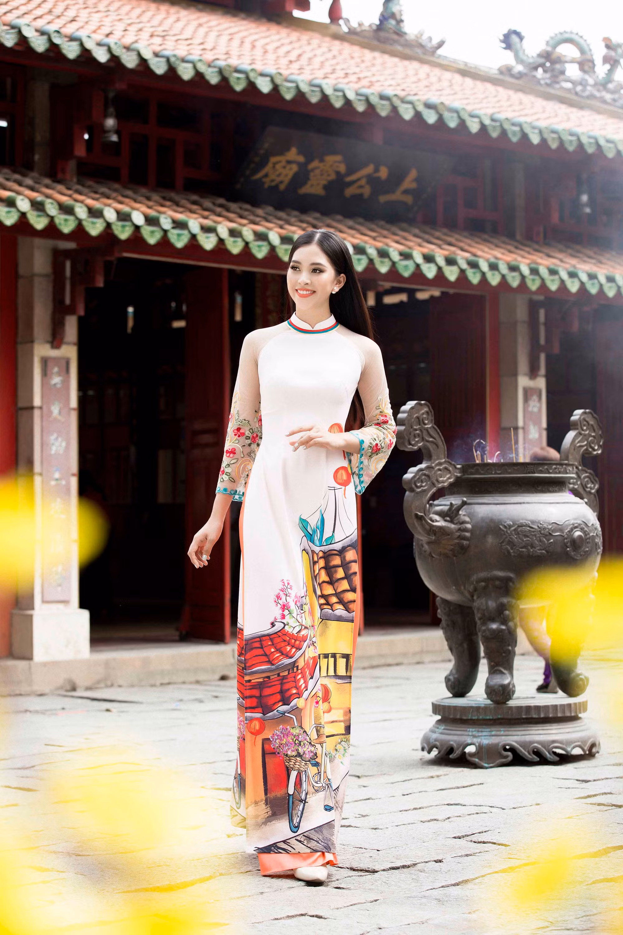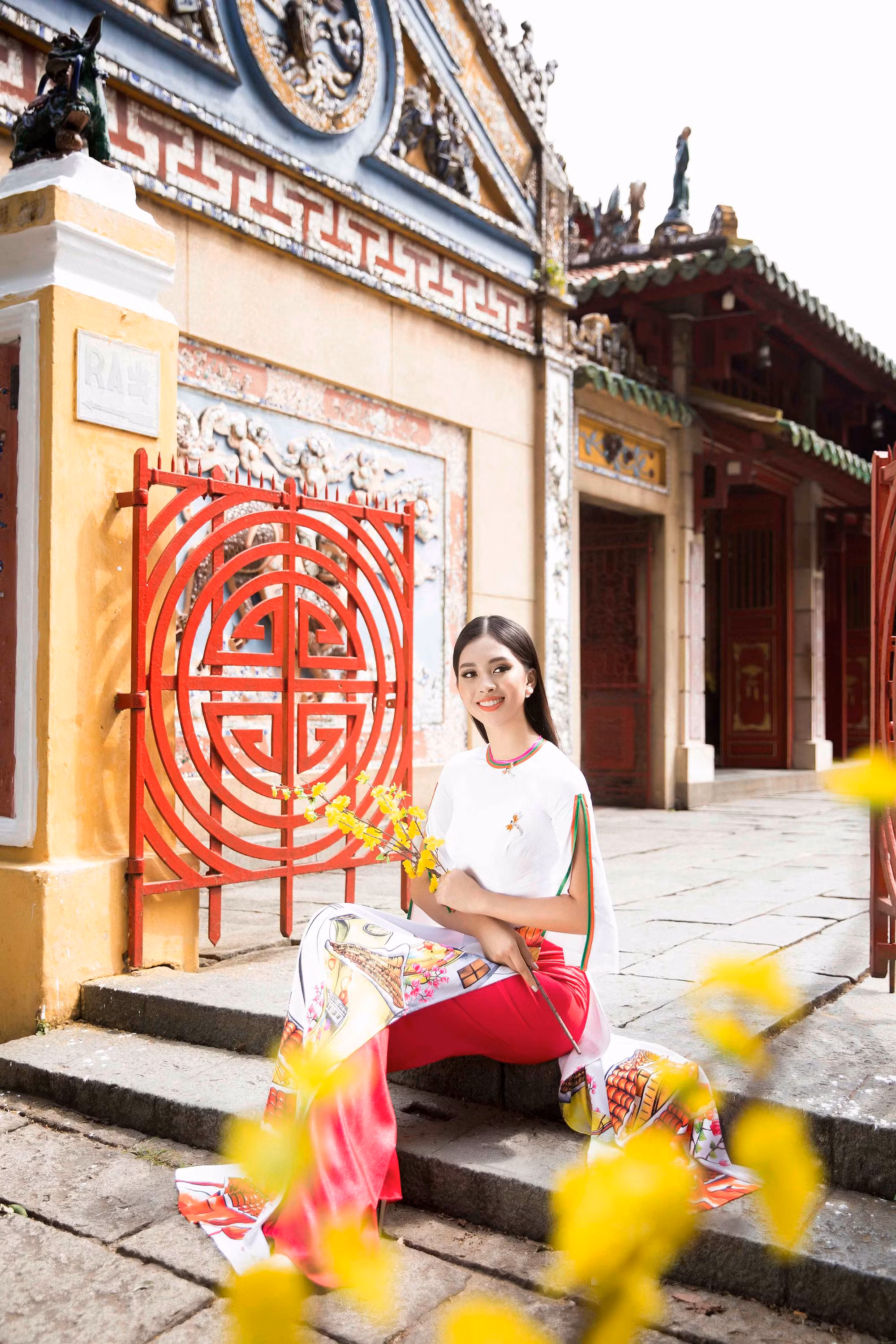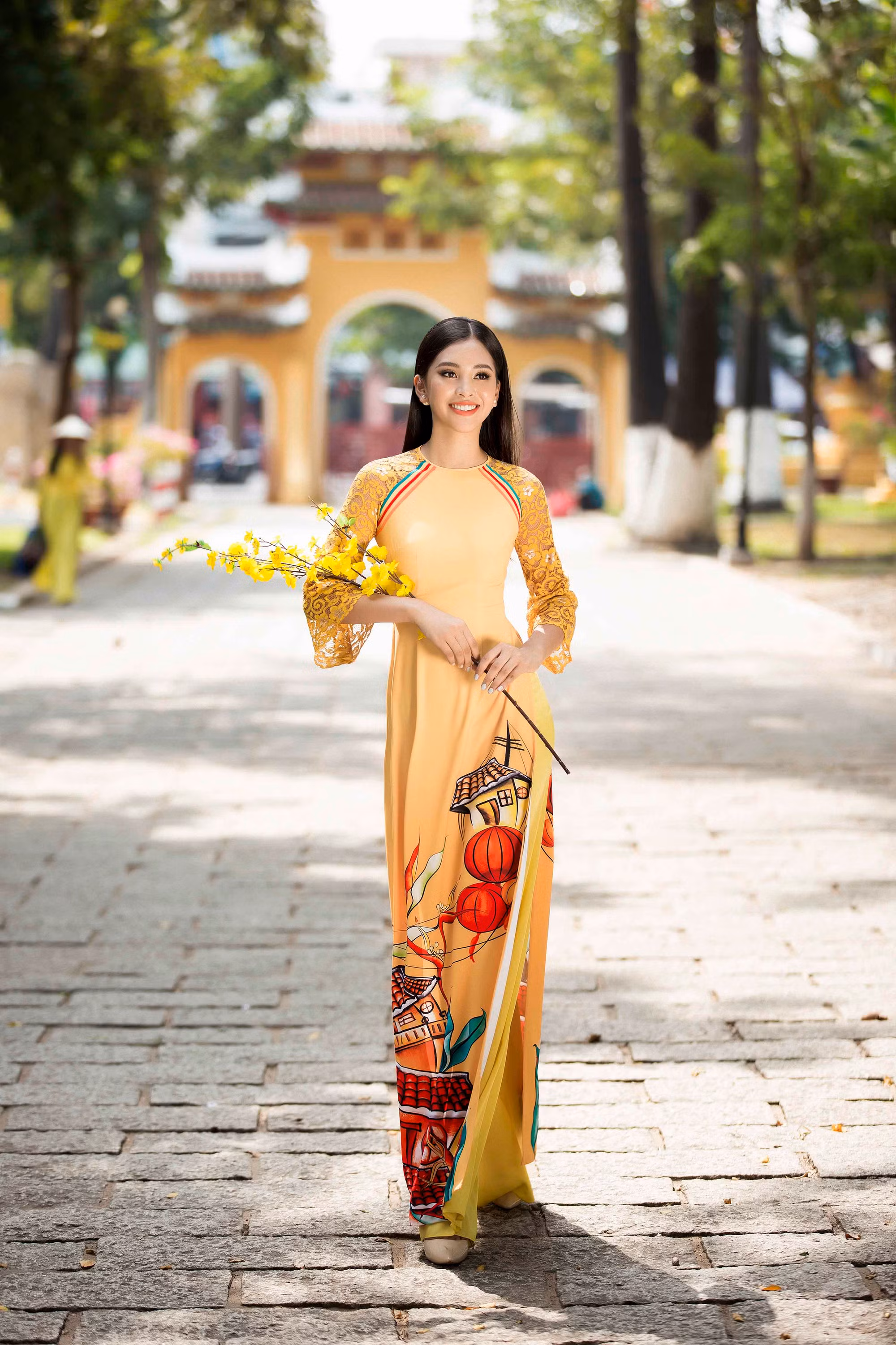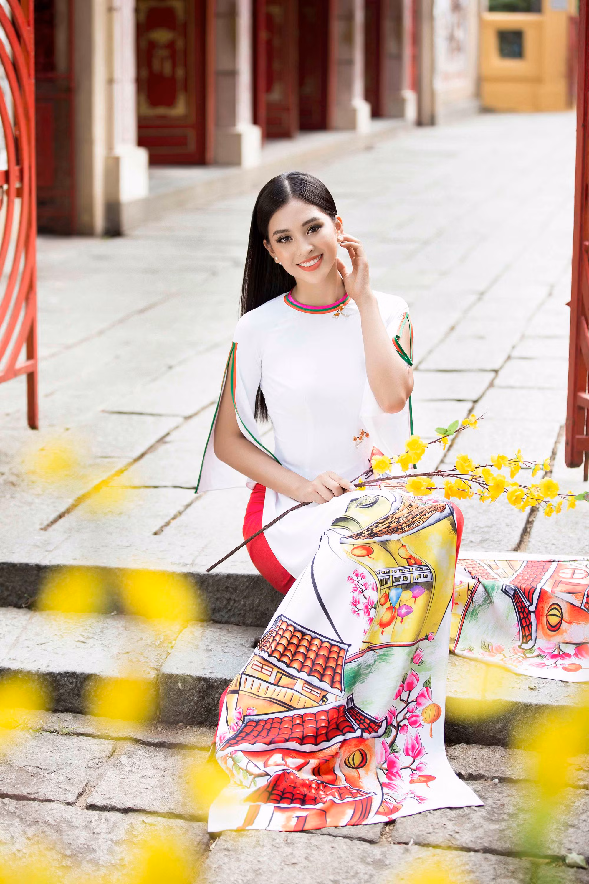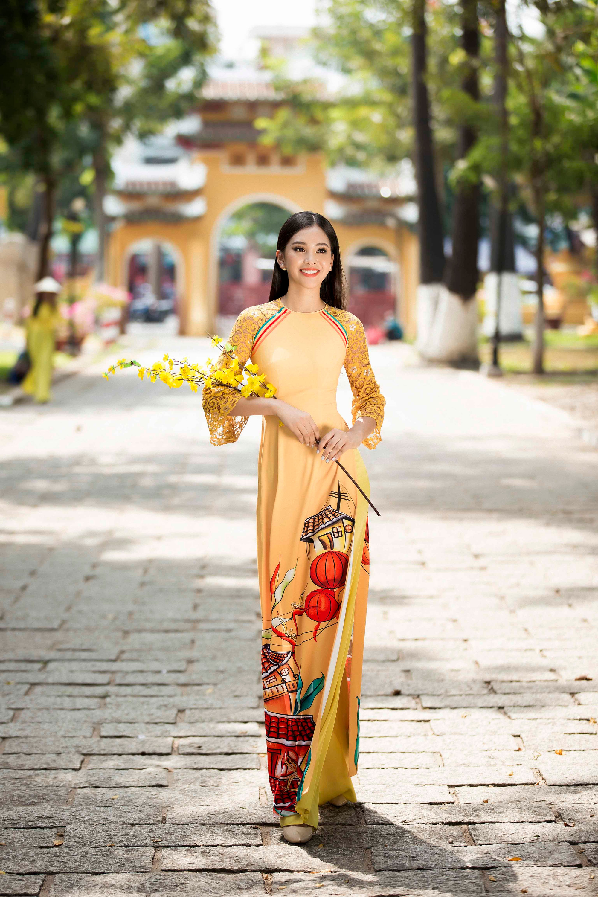 Những chiếc áo dài mừng Xuân mới được nhà thiết kế Ngô Nhật Huy sáng tạo với cảm hứng từ chính Hội An - quê hương của đương kim hoa hậu Tiểu Vy, mong muốn gửi gắm thông điệp mùa xuân và lời chúc an lành, mạnh khỏe, may mắn tới độc giả.