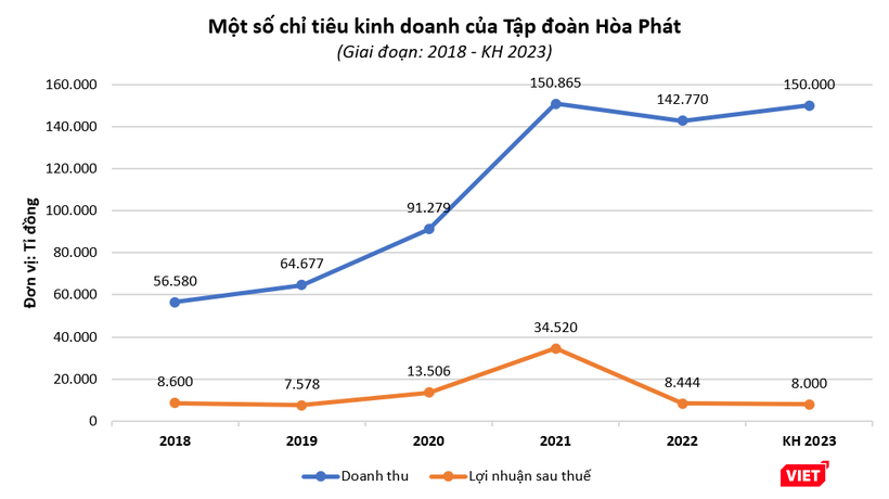 Trong năm 2022, lĩnh vực kinh doanh bất động sản và điện máy gia dụng của Hòa Phát đạt mục tiêu đề ra, nhóm ngành điện lạnh đạt 200% kế hoạch nhưng doanh thu, lợi nhuận của toàn tập đoàn vẫn sụt giảm mạnh chủ yếu do lợi nhuận ngành thép giảm 76% và nông nghiệp giảm 92% so với cùng kỳ.