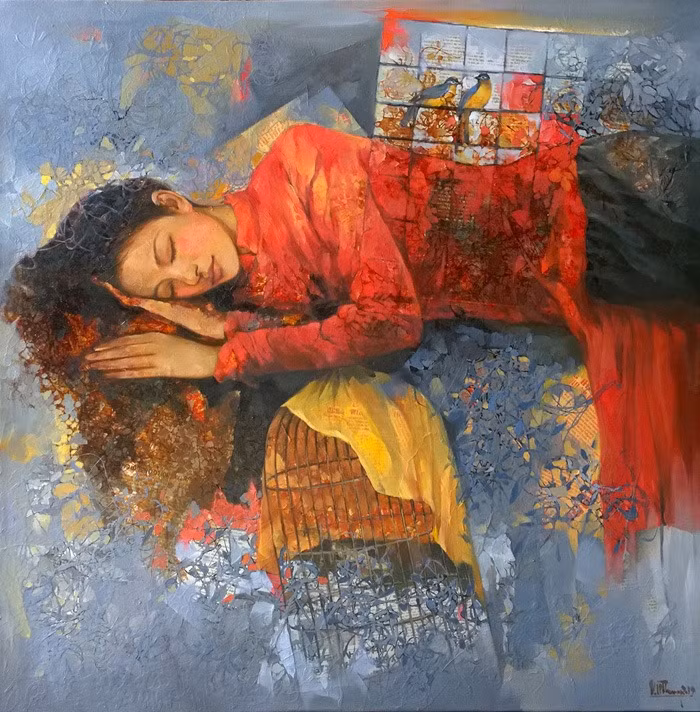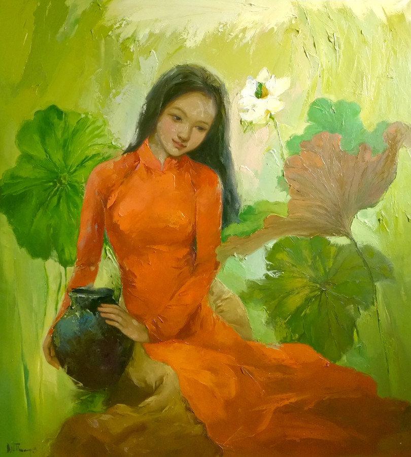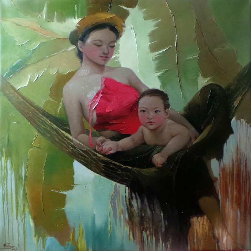 Vẻ đẹp trong trẻo trong tranh họa sĩ Đinh Ngọc Thắng thu hút người xem