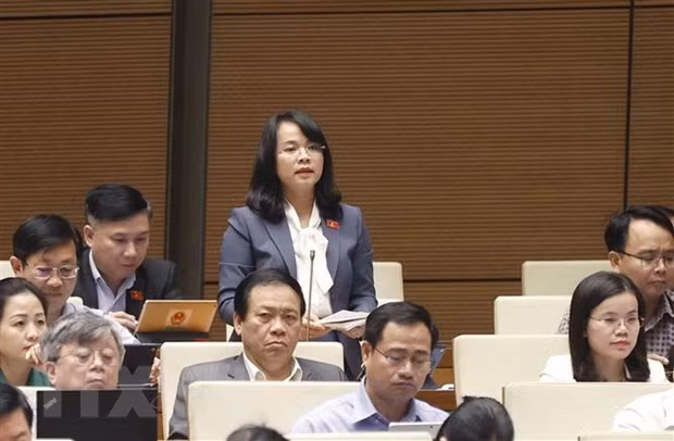 Đại biểu Quốc hội tỉnh Bình Thuận Phạm Thị Hồng Yến đặt câu hỏi chất vấn. (Ảnh: Doãn Tấn/TTXVN)