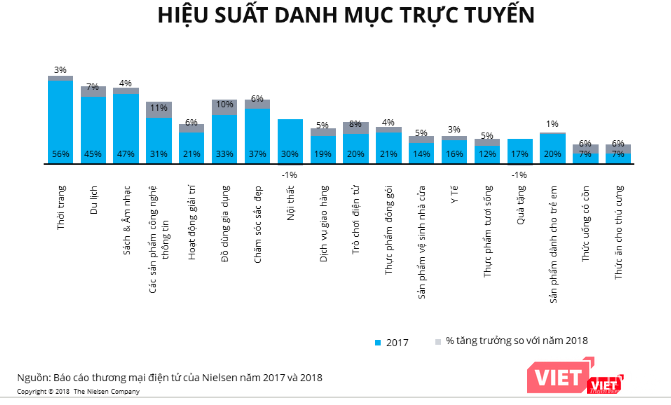 Theo báo cáo Thương mại điện tử của Nielsen 2018, trong số những người tiêu dùng truy cập vào internet thì có đến 98% người tiêu dùng đã mua hàng trực tuyến, tăng hơn so với năm 2017. Báo cáo cũng cho thấy 17% người tiêu dùng đã sử dụng các nền tảng công nghệ để mua các thực phẩm tươi sống, góp phần thúc đẩy sự tăng trưởng của ngành hàng tiêu dùng nhanh (FMCG) trên kênh thương mại điện tử.