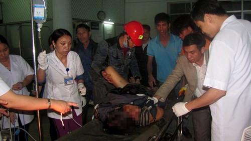 Cứu chữa cho các nạn nhân vụ sập giàn giáo – Ảnh: Nguyên Dũng