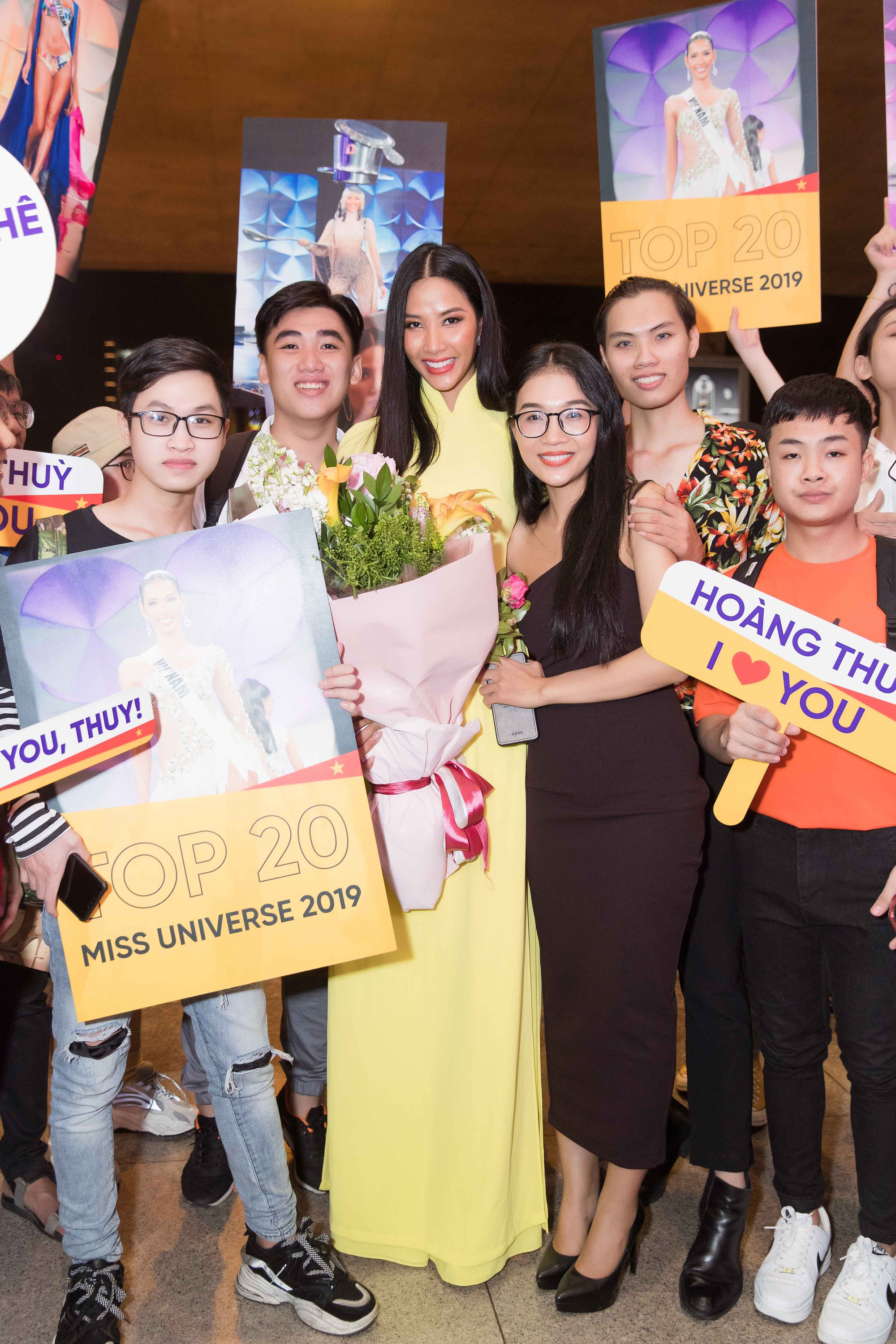 Sau 10 ngày thi đấu, Á hậu Hoàng Thùy đã trở về trong vòng tay khán giả hâm mộ quê nhà. Dù thời điểm chuyến bay đáp xuống là gần 12 giờ khuya, nhưng rất đông khán giả có mặt tại sân bay Tân Sơn Nhất để đón chào Hoàng Thùy trở về.