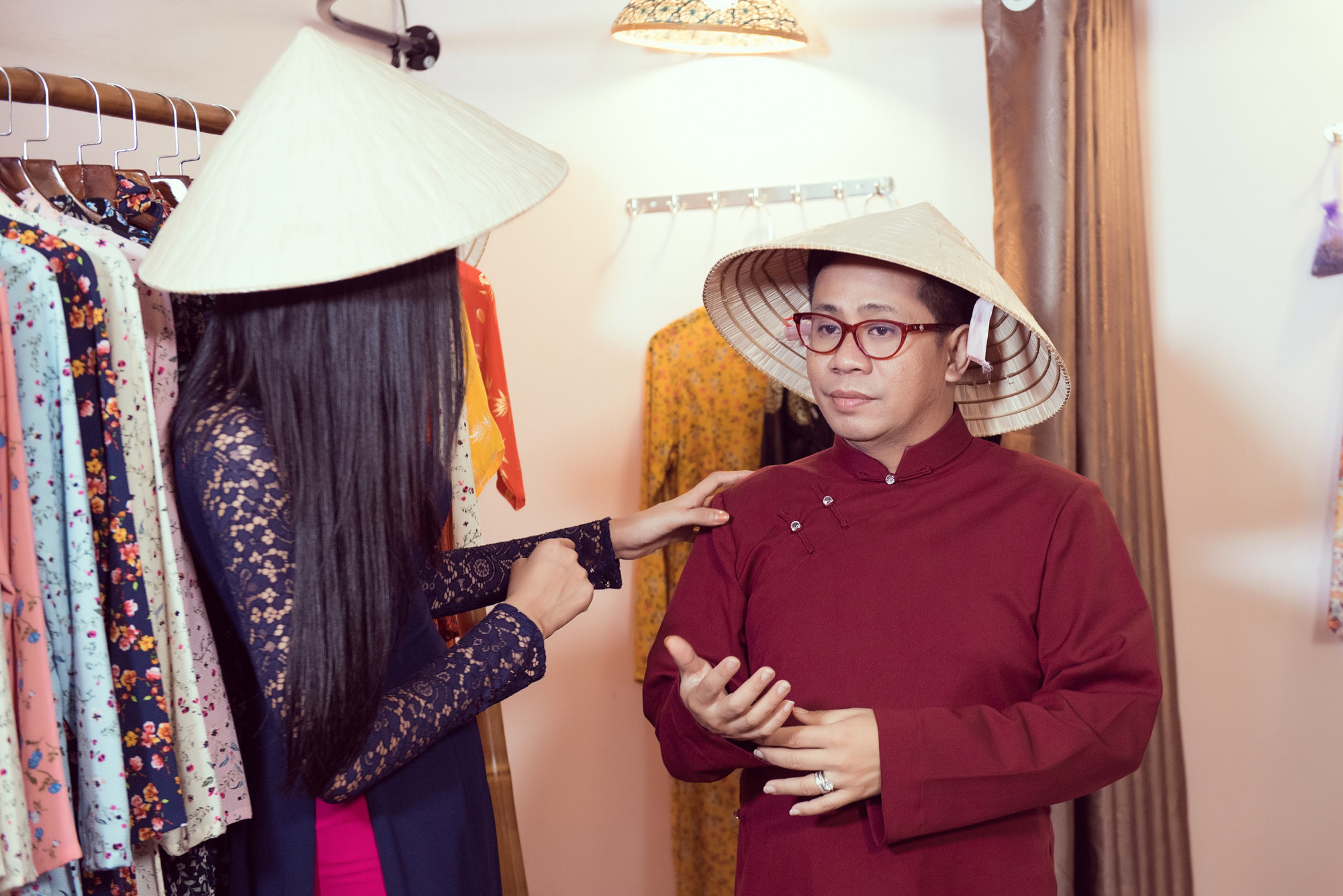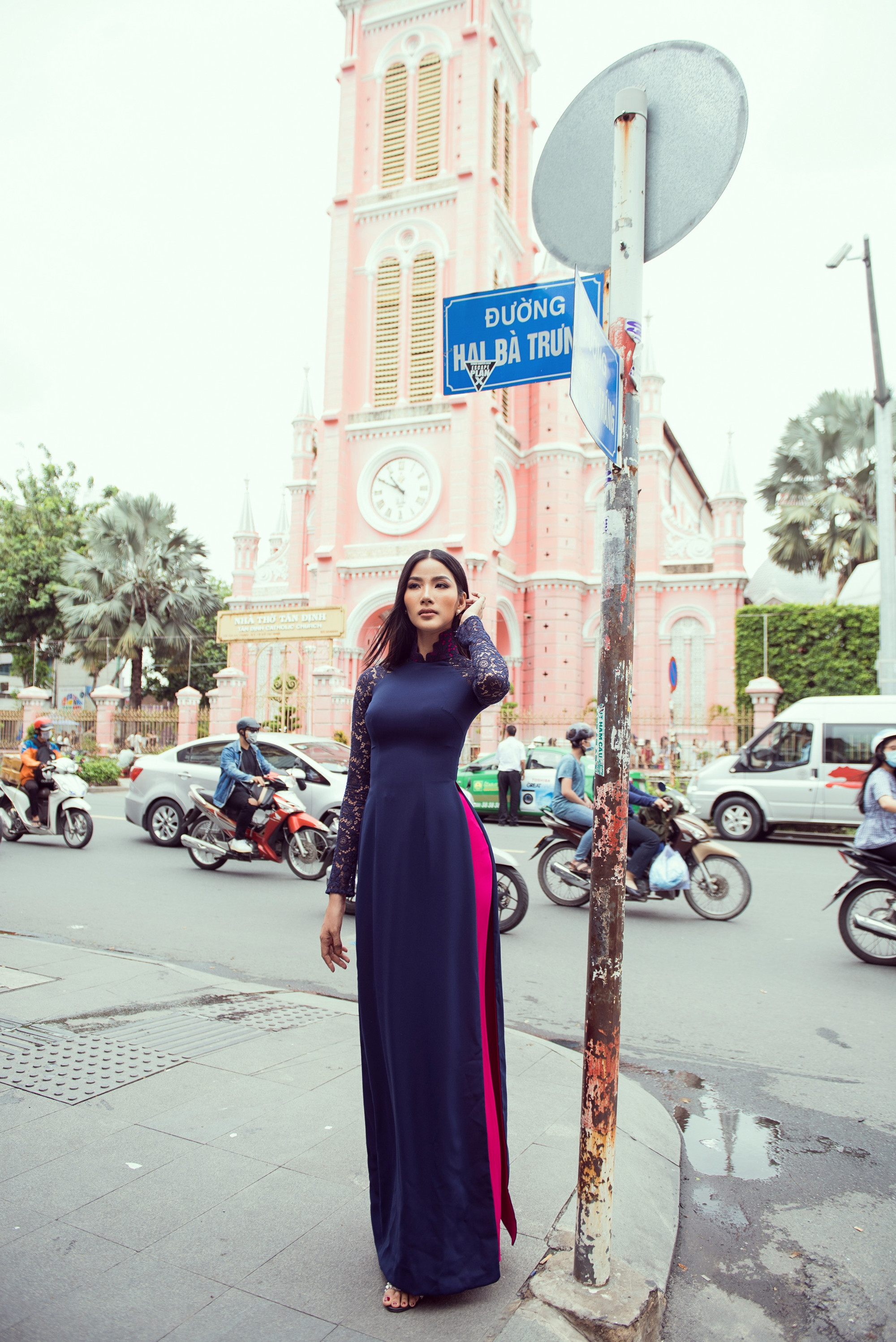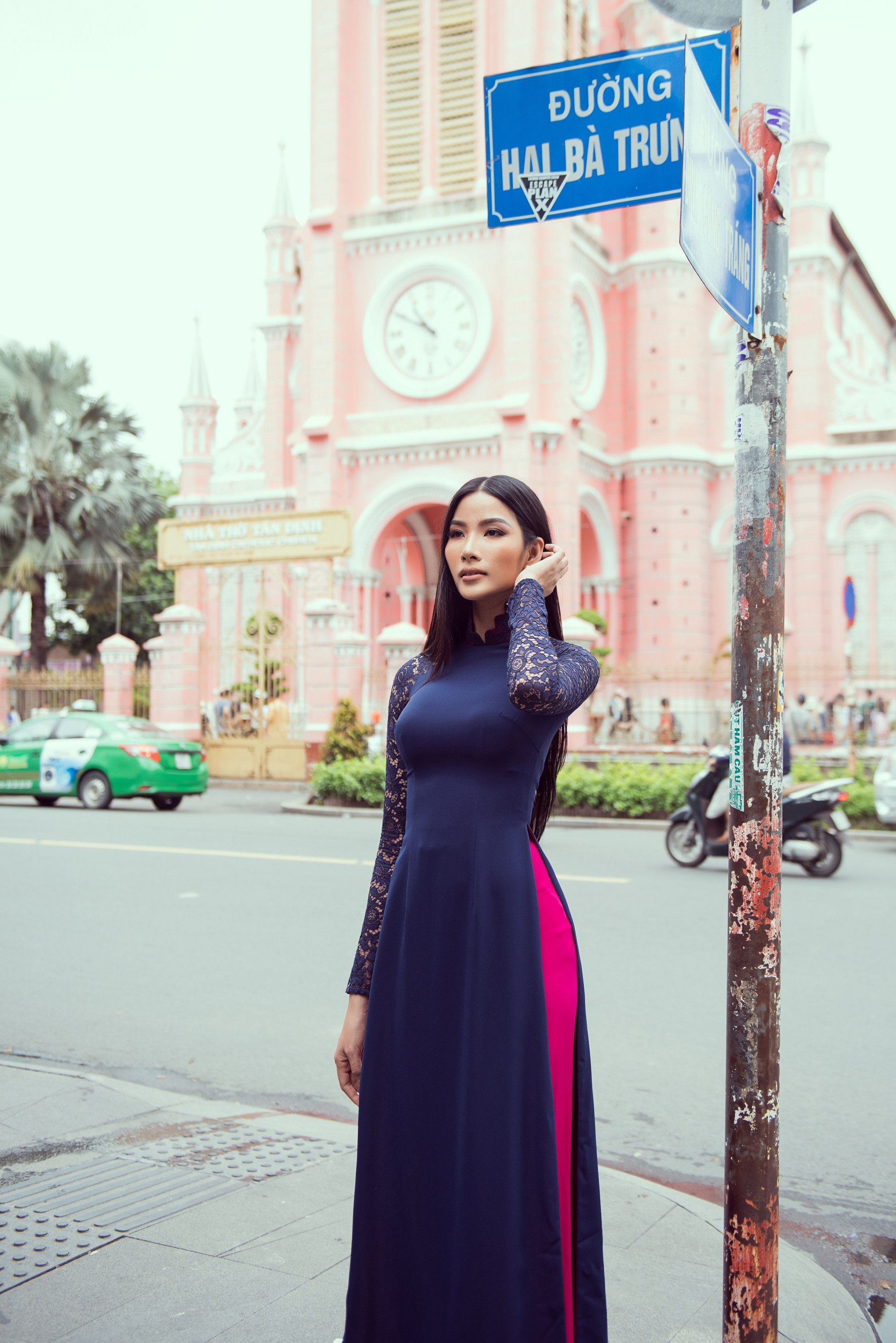 Ông Santos Anjo rất hào hứng và còn ngỏ ý muốn có một chiếc Áo dài như Hoàng Thùy. Ngay sau đó, cả hai đã cùng có mặt tại ngã ba đường Hai Bà Trưng và Đinh Công Tráng, Hoàng Thùy chia sẻ rất nhiều điều về văn hóa Việt Nam với người thầy của mình.