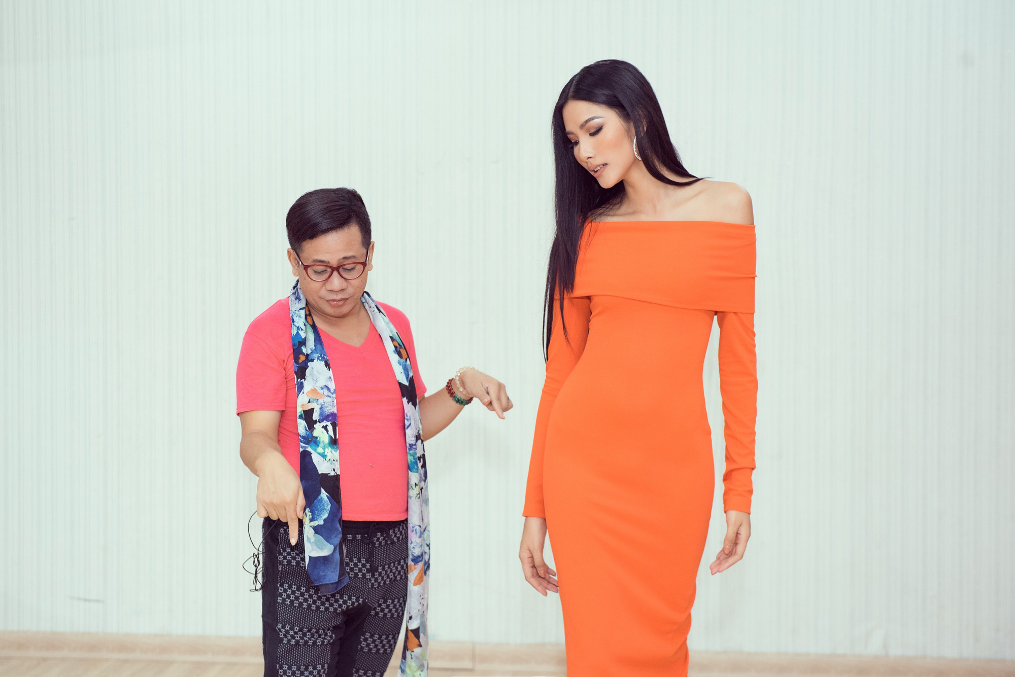 Hoàng Thùy tập luyện catwalk cùng thầy Santos Anjo đến từ Philippines. Cô đã học cùng thầy Santos hơn một tháng và thầy sắp quay trở lại Philippines, chính vì vậy mà Hoàng Thùy muốn tặng một bất ngờ đặc biệt dành cho thầy.