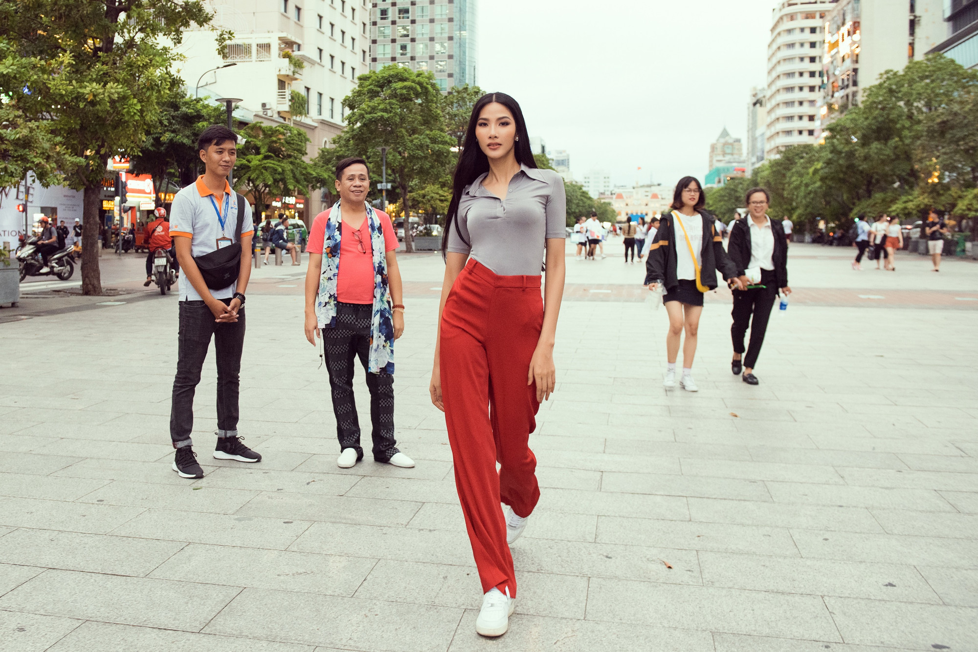 Có thể nhận thấy khả năng nói tiếng Anh của Hoàng Thùy đã cải thiện hơn rất nhiều khi cô tự tin hướng dẫn thầy dạy catwalk của mình đi khám phá khắp Sài Gòn.