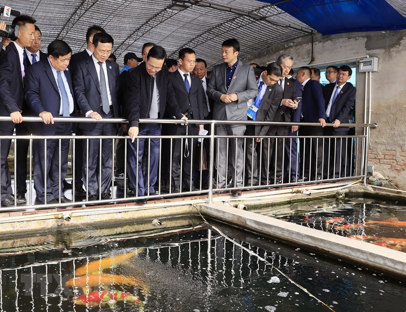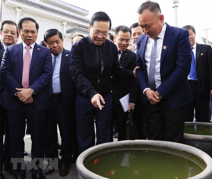 Chủ tịch nước Võ Văn Thưởng thăm mô hình điển hình xây dựng nông thôn mới tại thôn Tiểu Lỗ, xã Hắc Trang Hộ, quận Triều Dương, thành phố Bắc Kinh, Trung Quốc. (Ảnh: Thống Nhất/TTXVN)