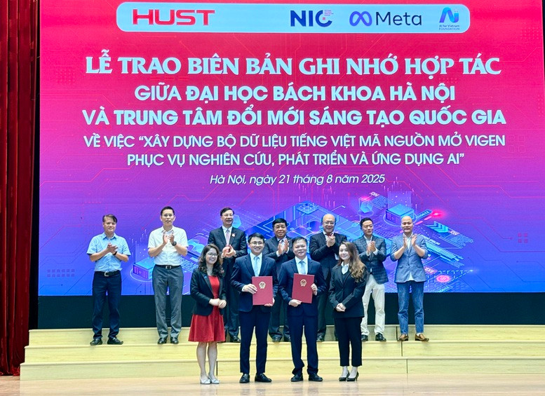 Cũng tại chương trình, Đại học Bách Khoa Hà Nội và Trung tâm Đổi mới sáng tạo Quốc gia đã trao biên bản ghi nhớ hợp tác về việc "Xây dựng bộ dữ liệu tiếng Việt mã nguồn mở VIGEN phục vụ nghiên cứu, phát triển và ứng dụng AI".