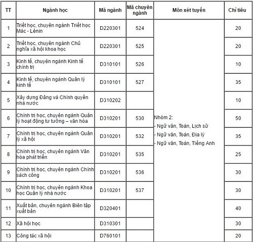Theo đó, Học viện báo chí và Tuyên truyền tổ chức xét tuyển bổ sung cho 18 ngành học, với chỉ tiêu cụ thể cho từng ngành như sau: