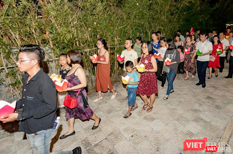 VietTimes -- Tối 14/8 nhằm 14/7 âm lịch, hàng ngàn người dân và du khách đã đổ về công viên Ấn tượng Hội An (TP Hội An, Quảng Nam) để cùng thắp sáng 7 đài sen lớn mừng mùa Vu Lan 2019.