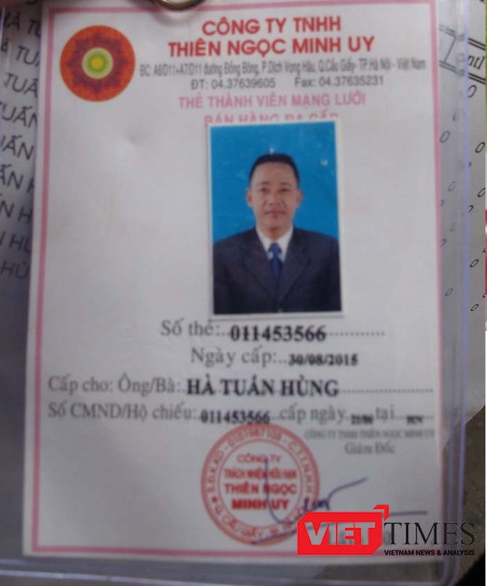 Khi được hỏi về thời gian tham gia vào mạng lưới của Thiên Ngọc Minh Uy, người phụ nữ này cho biết, bà tham gia từ tháng 12/2014, ban đầu được giới thiệu là sẽ được chăm sóc sức khỏe, đồng thời còn được nhận thêm các khoản lợi nhuận.