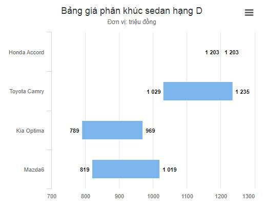 Phân khúc sedan hạng D cho thấy sự thoái trào trong vài năm qua. Nhiều hãng từ bỏ sự quan tâm ở phân khúc này để dồn lực cho các sản phẩm gầm cao vốn là xu hướng ưa chuộng toàn cầu cũng như tại Việt Nam. Trong 2019, Toyota chuyển Camry từ hình thức lắp ráp sang nhập khẩu. Kia Optima vừa có bản nâng cấp trong tháng 4 vừa qua.