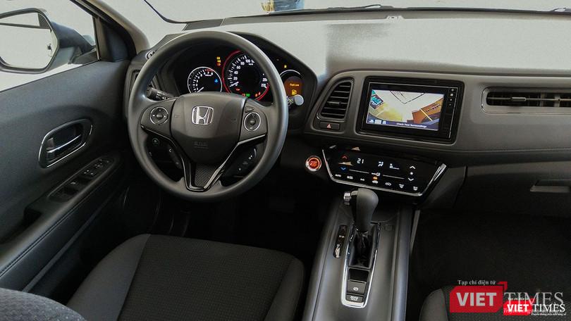 Không gian bên trong Honda HR-V phiên bản tiêu chuẩn 1.8G sử dụng khá nhiều chi tiết nhựa nhưng trông có vẻ cao cấp nhờ các chi tiết giả đường chỉ khâu, ghế ngồi bọc nỉ, chỉnh cơ.