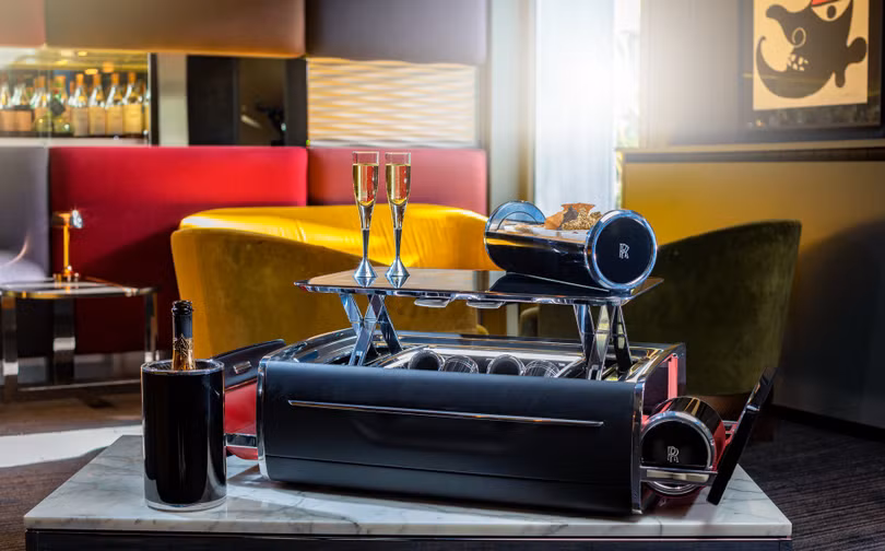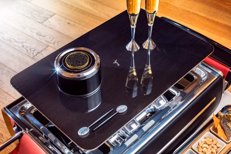 Rolls-Royce vốn nổi tiếng với những sản phẩm được cá nhân hóa và hộp đựng sâm banh cũng không ngoại lệ. Theo đó, khách hàng có thể yêu cầu loại da bọc ngoài tùy sở thích hay bát sứ để đựng đồ ăn nhẹ như các loại hạt, phô mai.