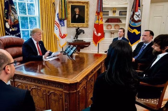 “Cuộc họp tuyệt vời chiều nay tại @WhiteHouse với @Jack từ @Twitter thật tuyệt. Rất nhiều chủ đề được thảo luận luên quan đến nền tảng của họ và thế giới truyền thông xã hội nói chung. Mong chờ cuộc đối thoại cởi mở trong tương lai!”, Tổng thống tweet cùng một bức ảnh chụp chung với Dorsey và những quan chức khác trong Phòng Bầu dục.