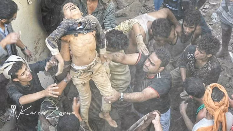 Theo hãng al-Masirah TV, cuộc không kích của Liên minh vùng Vịnh làm 6 thường dân thiệt mạng, 72 người khác bị thương. Hai trong số người dân bị thương là Shuk al-Nuaimi và Oksana al-Nuaimi, công dân Nga.