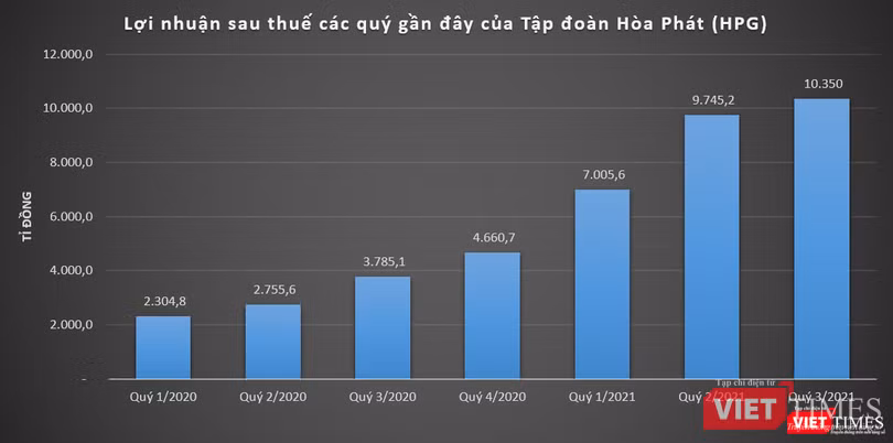 CTCP Tập đoàn Hòa Phát (Mã CK: HPG) vừa công bố kết quả kinh doanh quý 3/2021 với khoản lãi sau thuế ở mức 10.350 tỉ đồng, cao kỷ lục trong lịch sử hoạt động của doanh nghiệp này.