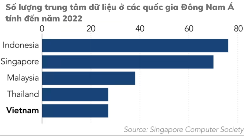 Theo Hiệp hội Máy tính Singapore, Việt Nam hiện có 27 trung tâm dữ liệu, ít hơn so với 38 trung tâm ở Malaysia và 70 trung tâm ở Singapore.