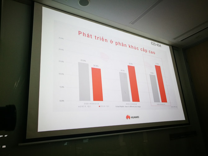 Theo số liệu của GFK, về thị phần, tại thị trường Việt Nam, tính đến tháng 10/2016, Huawei từ dưới mức 1% đã đạt 3,7%. Hãng này dự kiến đến hết tháng 12/2016 thị phần sẽ tăng lên 5%. Mức độ nhận diện thương hiệu của Huawei cũng tăng trưởng 6 lần trong năm 2016, từ 10% lên 59,3% (theo nghiên cứu từ Neilsen). Huawei đặt mục tiêu chiếm lĩnh 10% thị phần tại thị trường smartphone Việt Nam trong năm 2017.