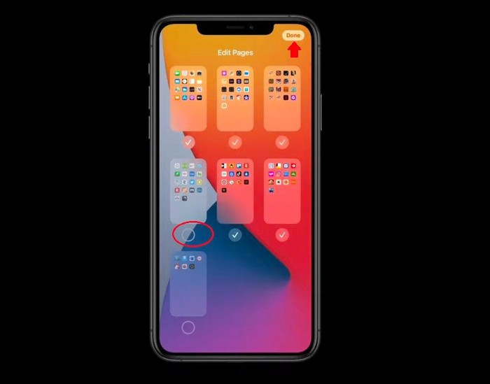 Sau đó bạn chỉ cần bỏ dấu tích chọn với trang màn hình chính nào muốn ẩn đi, và cuối cùng bấm Done để hoàn tất.