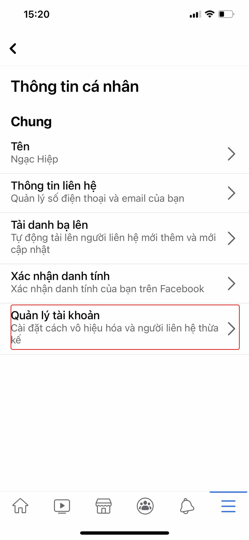 Bước 1: Bạn vào ứng dụng Facebook trên điện thoại, vào biểu tượng ba gạch ngang > Chọn Cài đặt riêng tư > Cài đặt > Thông tin cá nhân.