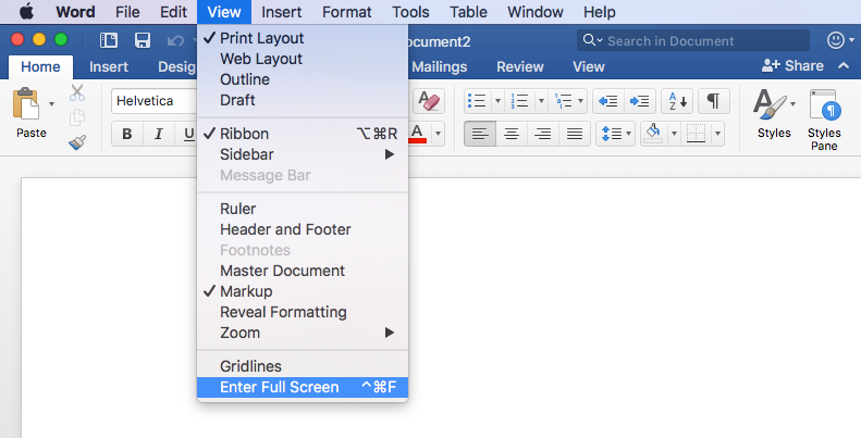 Hoặc vào View > Enter Full Screen (Command + Alt + F).
