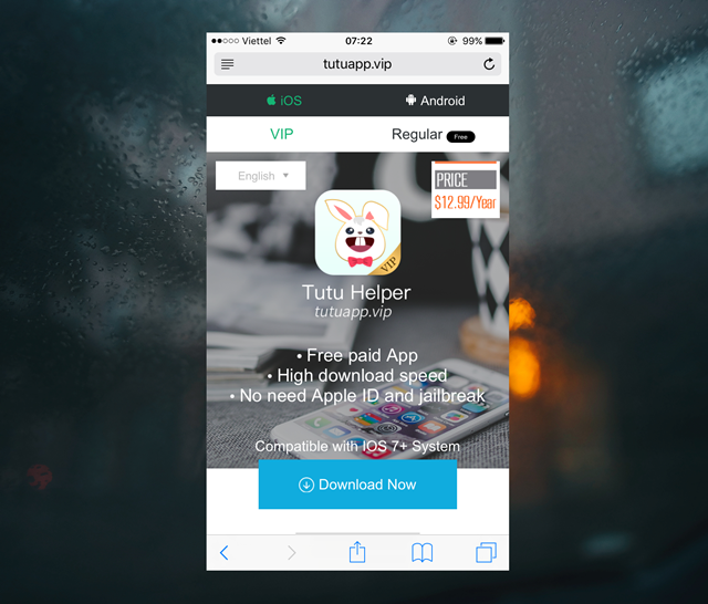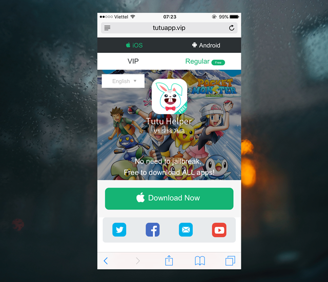 Khởi động trình duyệt Safari trên iPhone và truy cập vào địa chỉ “tutuapp.vip”, sau đó nhấp vào dòng “Regular”.
