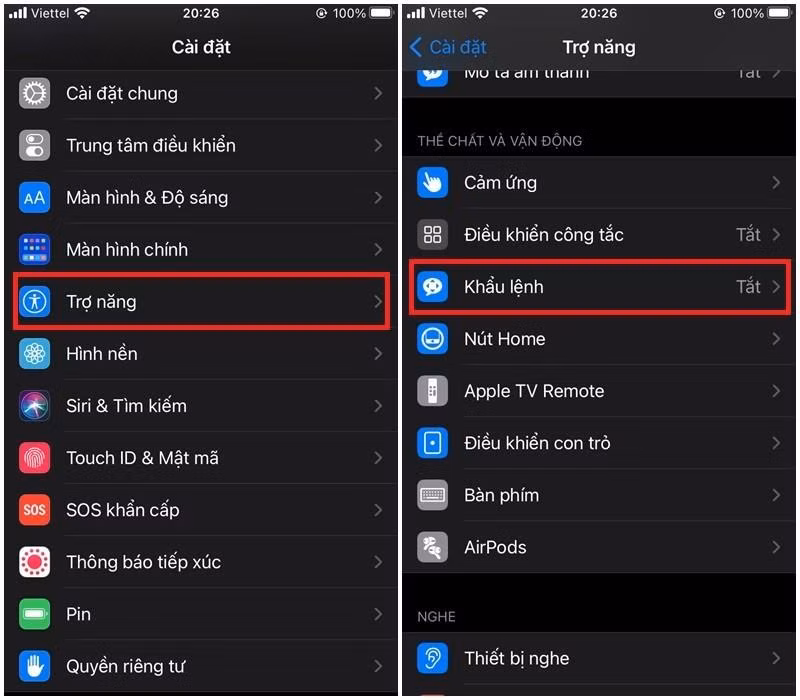 Bước 1 : Bạn mở Cài đặt > Chọn Trợ năng > Khẩu lệnh .
