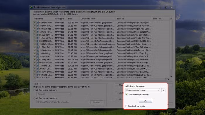 Bước 7: Chọn vào mục "Start queue processing" và nhấn OK để bắt đầu quá trình tải về.