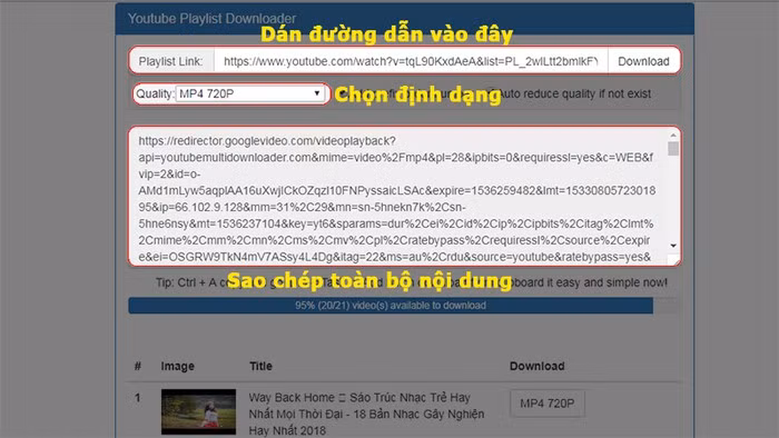 Bước 3: Dán đường dẫn vừa sao chép vào mục "Playlist Link", lúc này một đoạn mã sẽ tự động xuất hiện ngay bên dưới, hãy sao chép lại toàn bộ. Bạn cũng có thể chọn định dạng, chất lượng video cần tải về thông qua công cụ bên cạnh.
