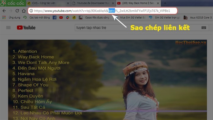Bước 1: Sao chép đường dẫn video Youtube bất kỳ cần tải trong Playlist của bạn, lưu ý đường dẫn hợp lệ phải có định dạng list=