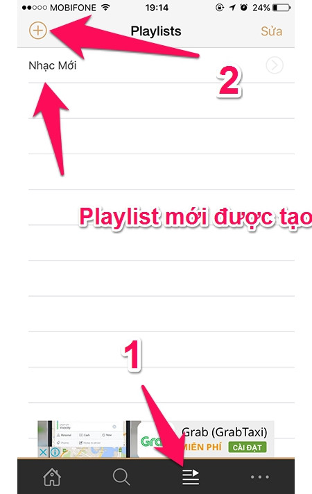 Bước 4: Tạo danh sách phát tự động (Playlist) với những bài hát mà bạn yêu thích. Lưu ý, bạn cần nhấn vào biểu tượng Playlist như hình phía dưới và chọn biểu tượng + để thêm bài hát hay video mới. Phát một video bất kì và nhấn vào dấu + để thêm vào danh sách phát tự động (Playlist).