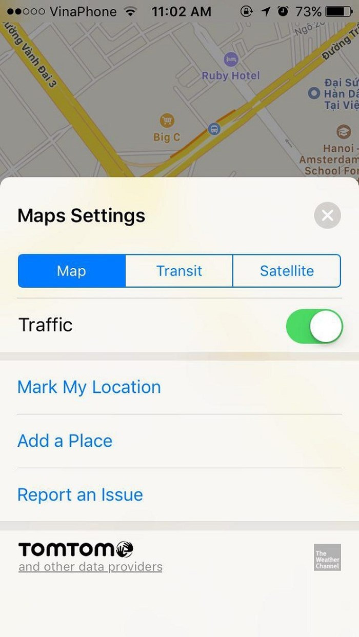 Bật tính năng Giao thông (Traffic). Thông thường tính năng này tự mở sẵn.