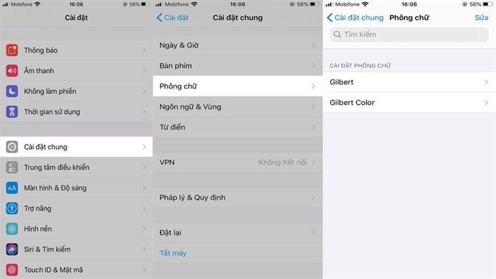 Để quản lý các font chữ của bạn, truy cập Cài đặt > Cài đặt chung > Phông chữ