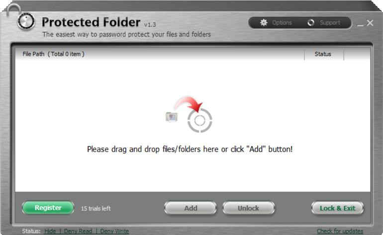 Phần mềm có cách sử dụng khá đơn giản. Bạn chỉ việc sử dụng chuột, kéo và thả những file/thư mục mà mình muốn được bảo vệ vào giao diện chính của phần mềm.