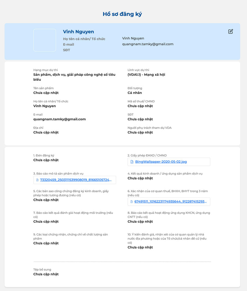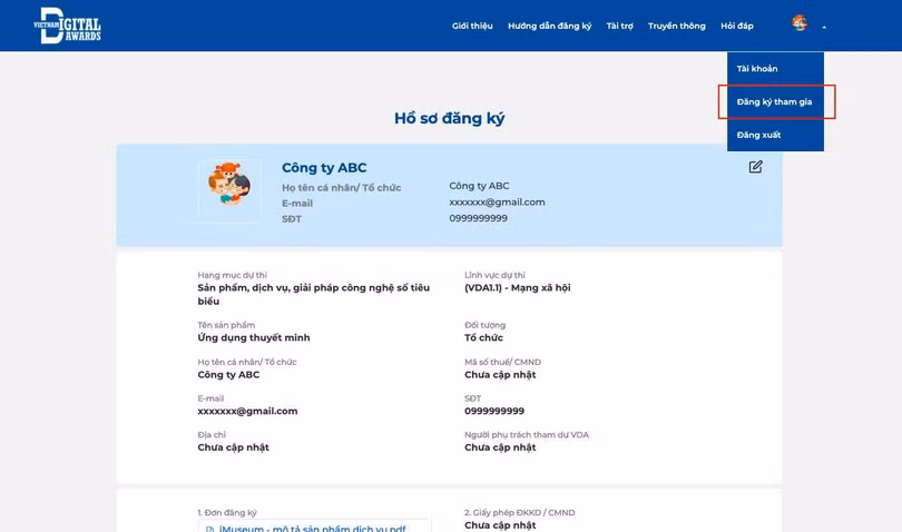 Bước 4: Điền thông tin đăng ký tham gia Giải thưởng và tải các file theo yêu cầu