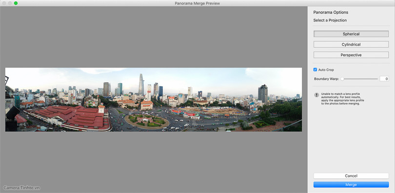 Sau khi chọn chức năng Merge Panorama, một cửa sổ sẽ hiện ra