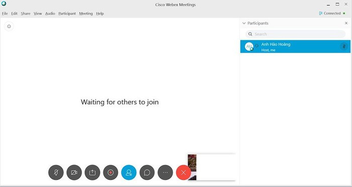 Khi đang họp trên app Webex, nút chức năng không có nhiều.
