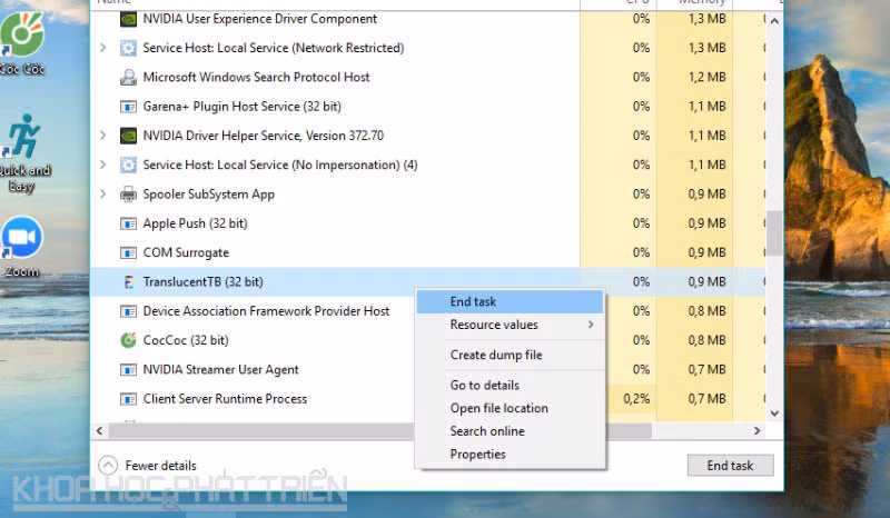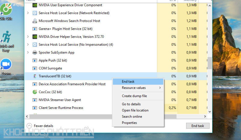 Nếu muốn tắt tiện ích này, người dùng chỉ cần mở Task Manager và lựa chọn kết thúc.