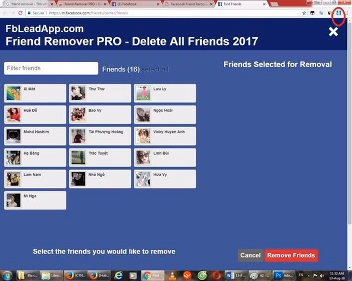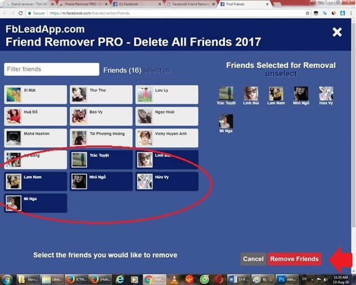 Ở đó, chúng ta chỉ cần bấm chọn từ dưới lên và bấm nút Remove Friends để hủy kết bạn với những người cuối danh sách.